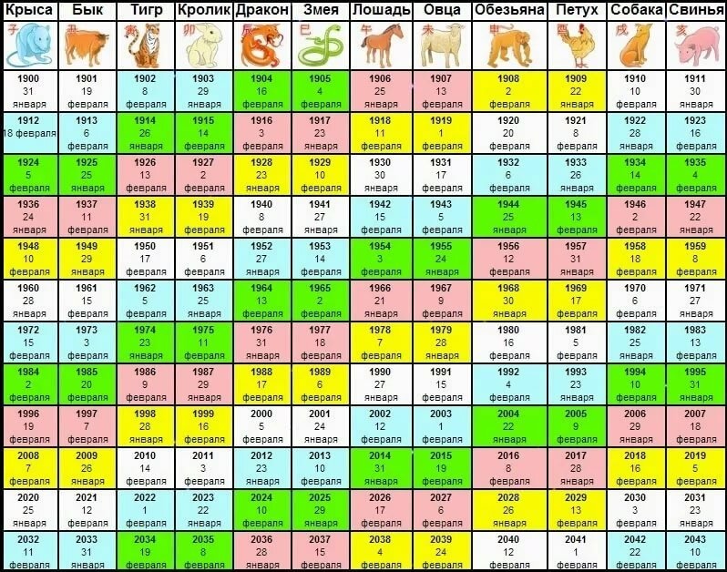 Крыса / Бык / Тигр / Кролик (Кот) / Дракон / Змея / Конь / Коза / Обезьяна / Петух / Пёс / Кабан