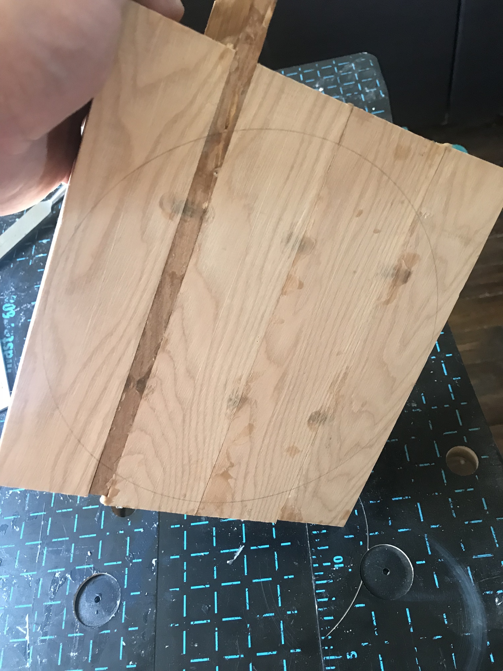 Кто видел мой предыдущий пост наверняка помнят эту заготовку под чашу. Щит из ясеня со вставкой из дубовой дощечки.