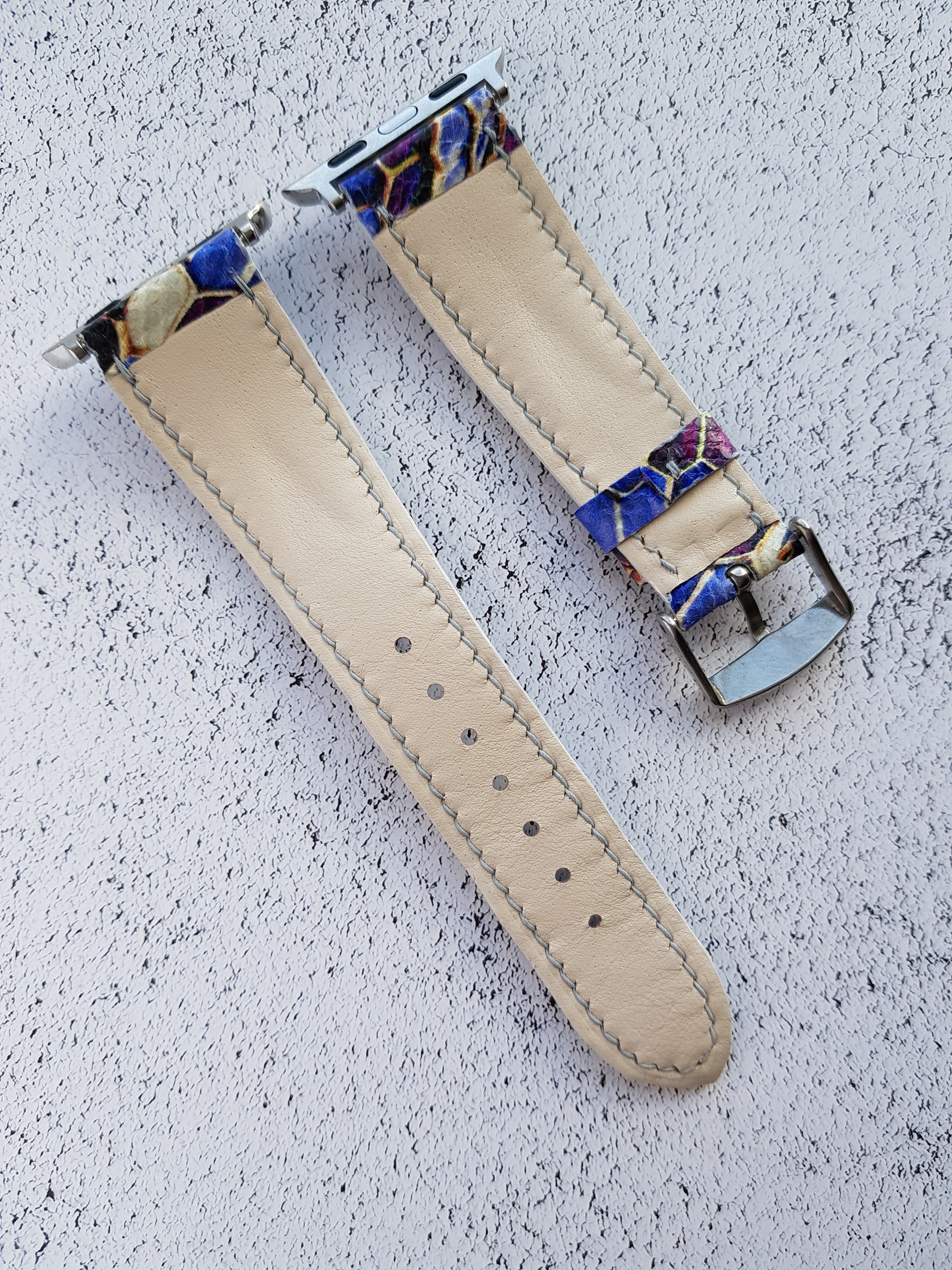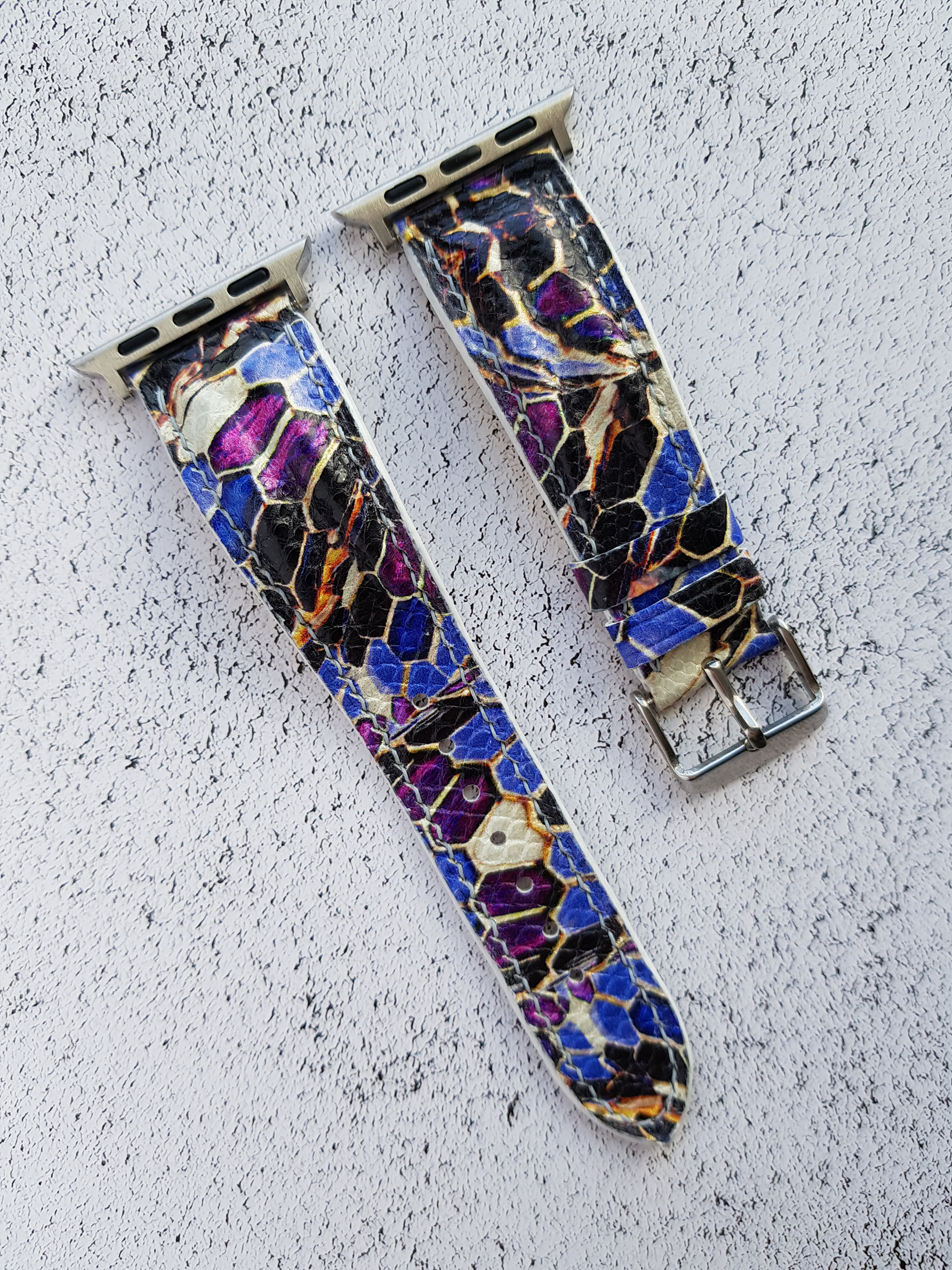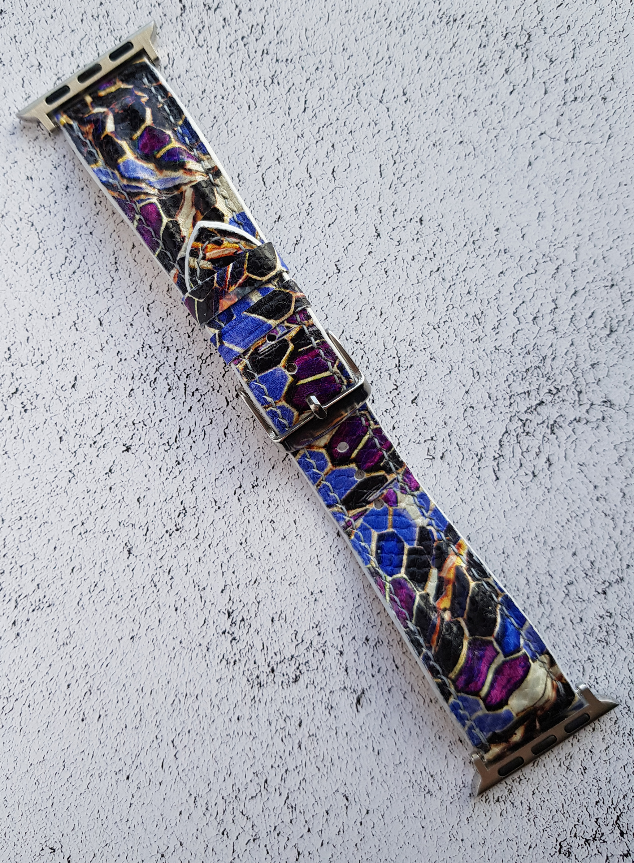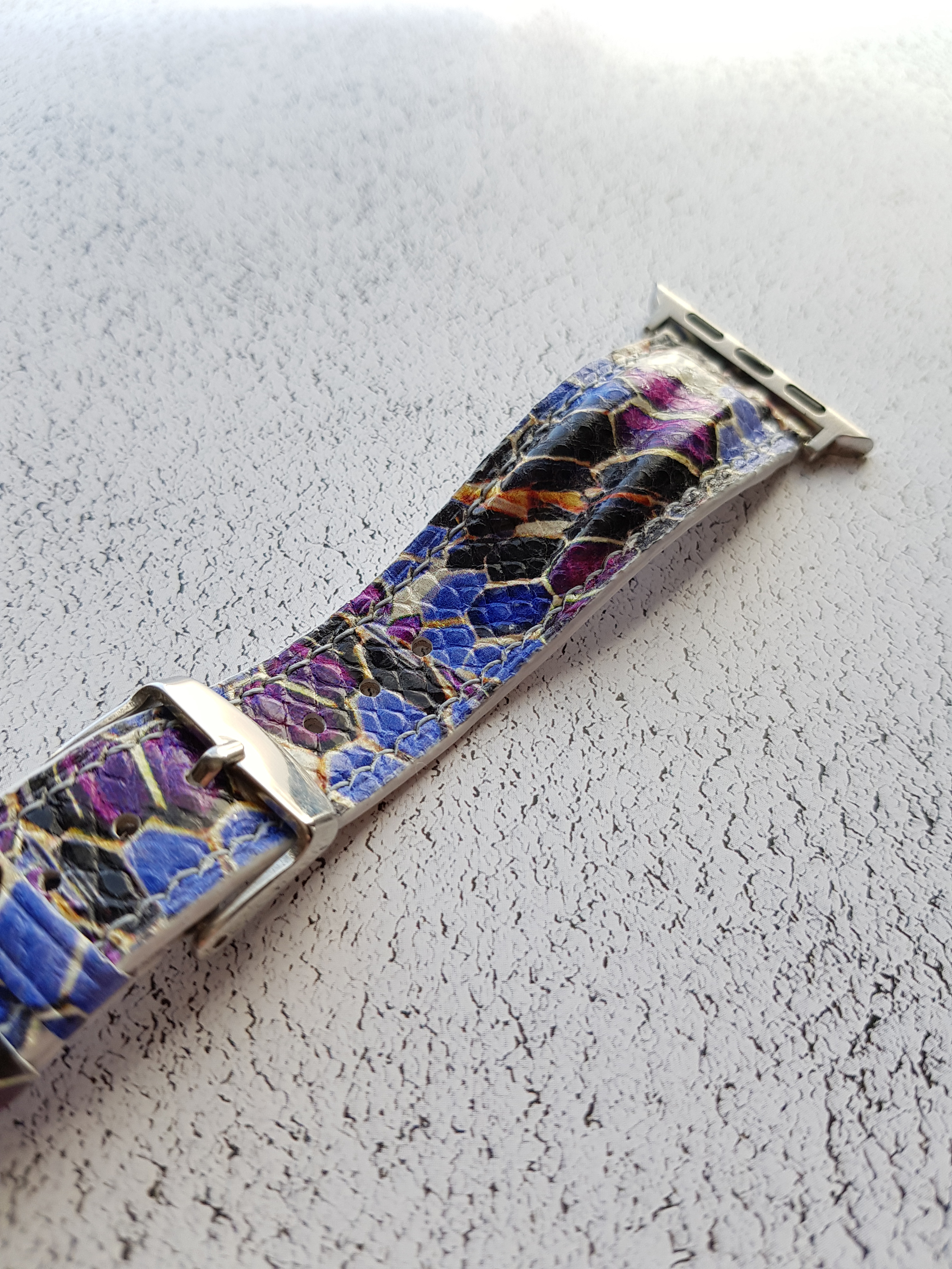 Следующие ремешок из кожи змеи с радужным принтом. Я уже делал ремешок из этой кожи, но там он был попроще.