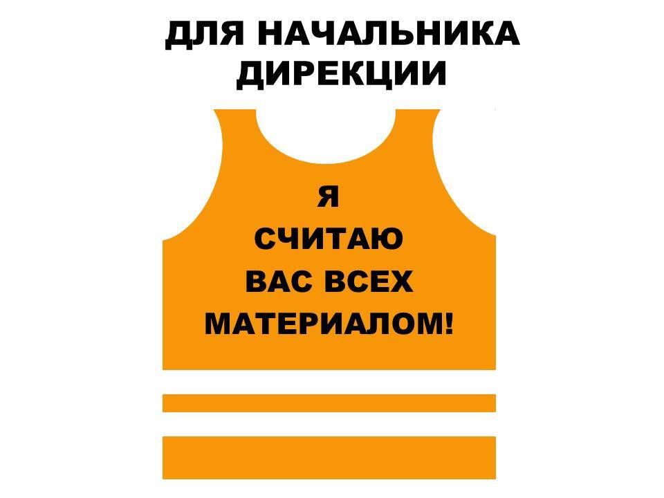 На просторах интернета наткнулся на одну новость: "отличившихся" работников АО "РЖД" теперь будут заставлять носить такую вот "желтуху" - "Я подвёл депо". Не знаю, правда ли это, или нет, но не удивлюсь, если эта спецодежда прошла функциональным проектом, либо рацпредложением, и за неё некий персонаж с отрицательным уровнем интеллекта в одной из немногих дирекций получил неплохую премию.