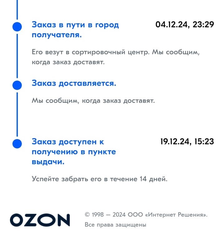 П.С. ОЗОН 22.12.2024 перечислило мне 500 баллов, видимо, чтобы я себе ни в чем больше не отказывала...