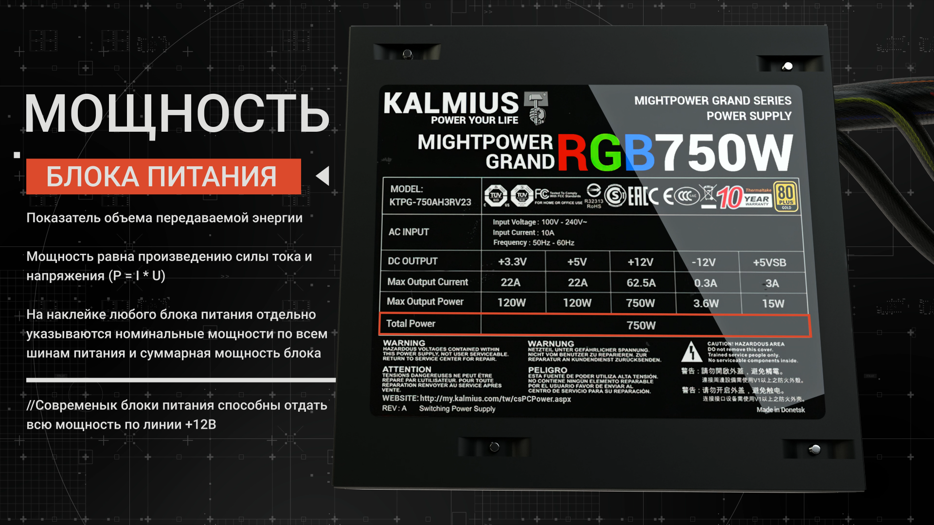 Обычно производители указывают общую мощность которая отдаётся по всем линиям, но нужно обращать внимание на мощность, которую блок питания может выдать по линии 12В, умножив напряжение на силу тока, ведь линии 5В и 3.3В в современных компьютерах практически не нагружены.