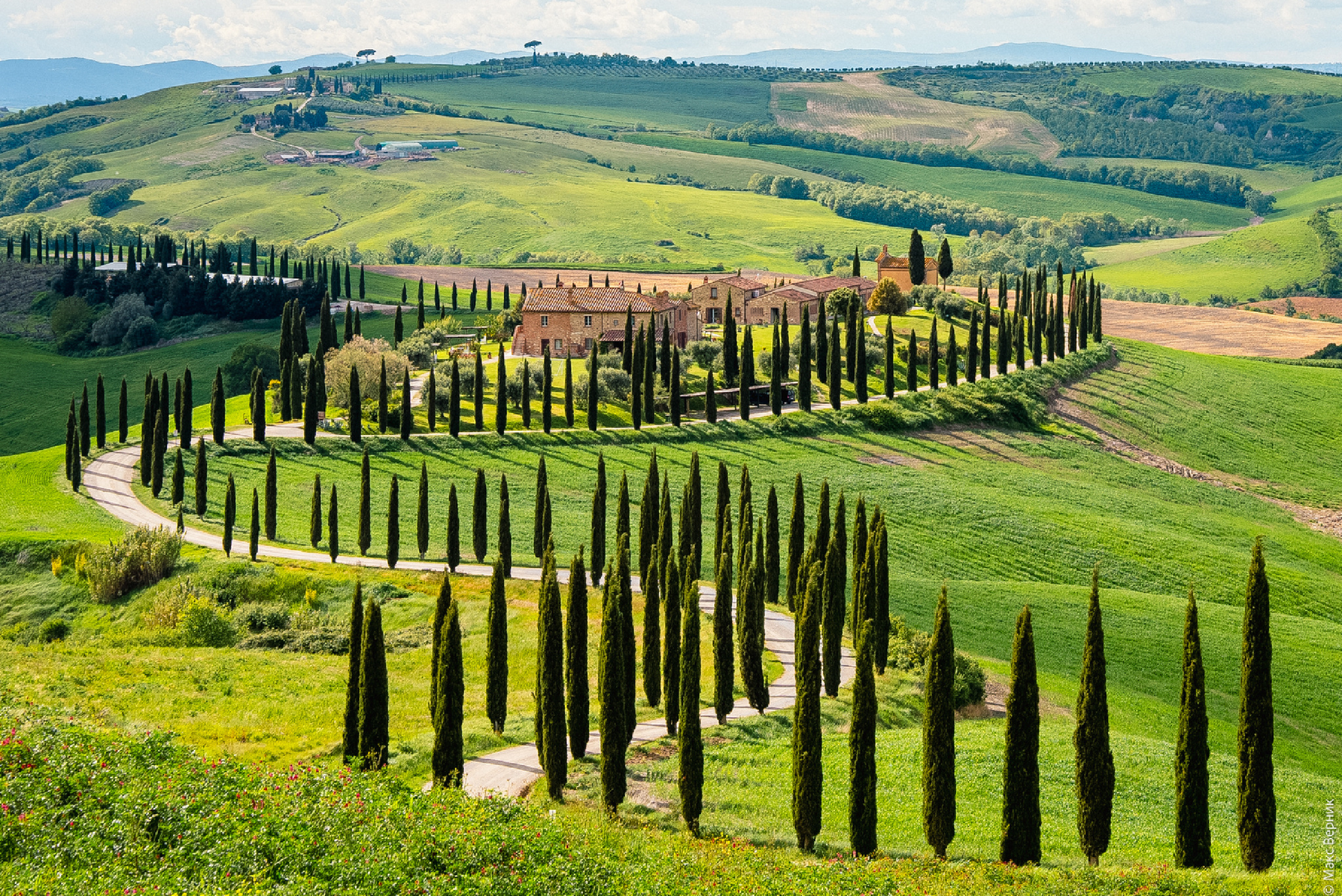 Всю Тоскану можно объехать недели за две, не спеша дегустируя по два городка в день. У меня на Тоскану было всего два дня, поэтому я начал с природы Валь-д’Орча — холмы, кипарисовые аллеи и тот самый «вечный» тосканский пейзаж.
