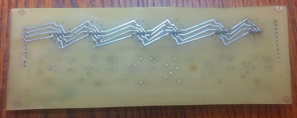 После окончания травления и сверления всех отверстий, плата стала выгладить так: