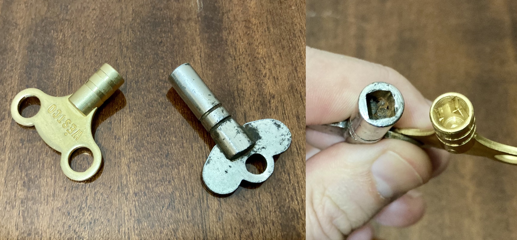 Заводить часы по паспорту надо не чаще, чем раз в две недели, мои идут от одного завода точно не менее полумесяца. Кстати, они попали ко мне вместе с ключом, но я обнаружил, что китайский латунный ключ от радиатора также прекрасно к ним подходит (внутри ключей квадрат со стороной около 5 мм).