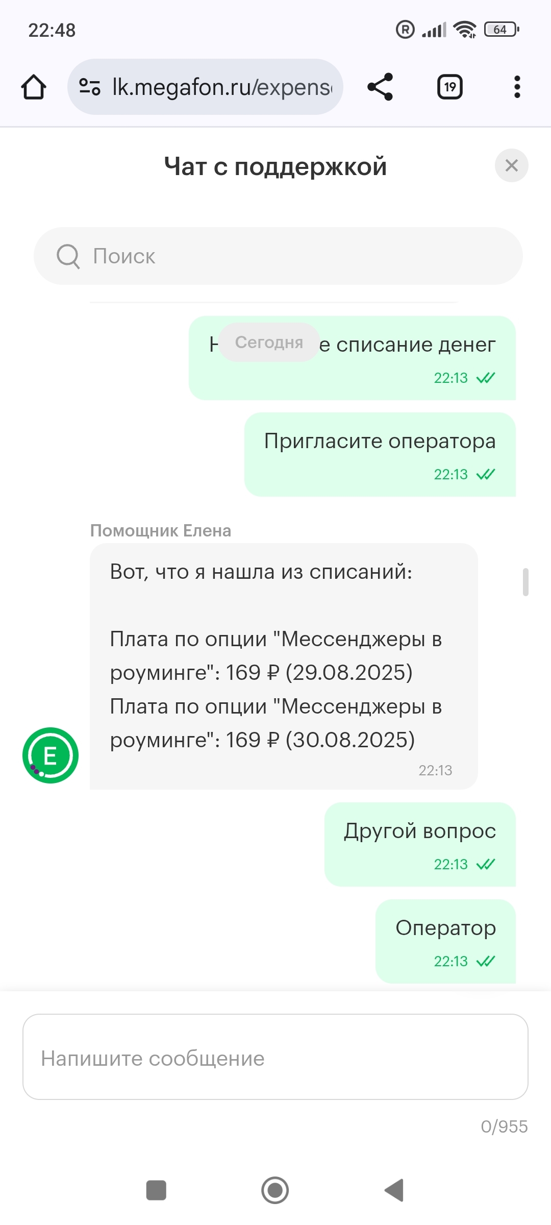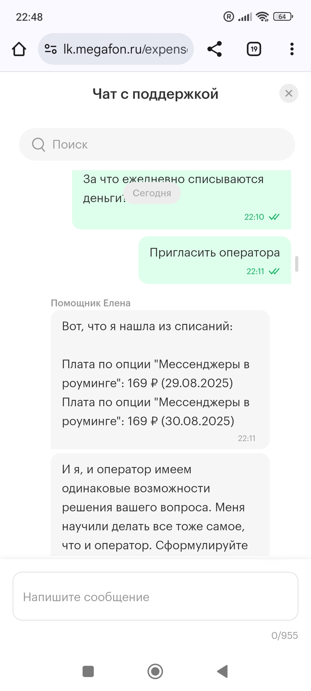 Общение с чат ботом выглядит просто насмешкой, он пишет что списание произведено за опцию, но у вас платных опций не найдено. На оператора не переподключает. Отключить тоже не может, объяснить что это за опция тоже не может. Скрины общения приложу, но там все по кругу