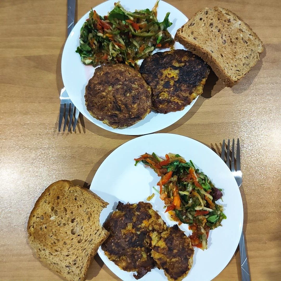 К ним сделала овощи с зеленью — натёрла на тёрке, но теперь понимаю, что лучше просто резать салат: организму нужна клетчатка.