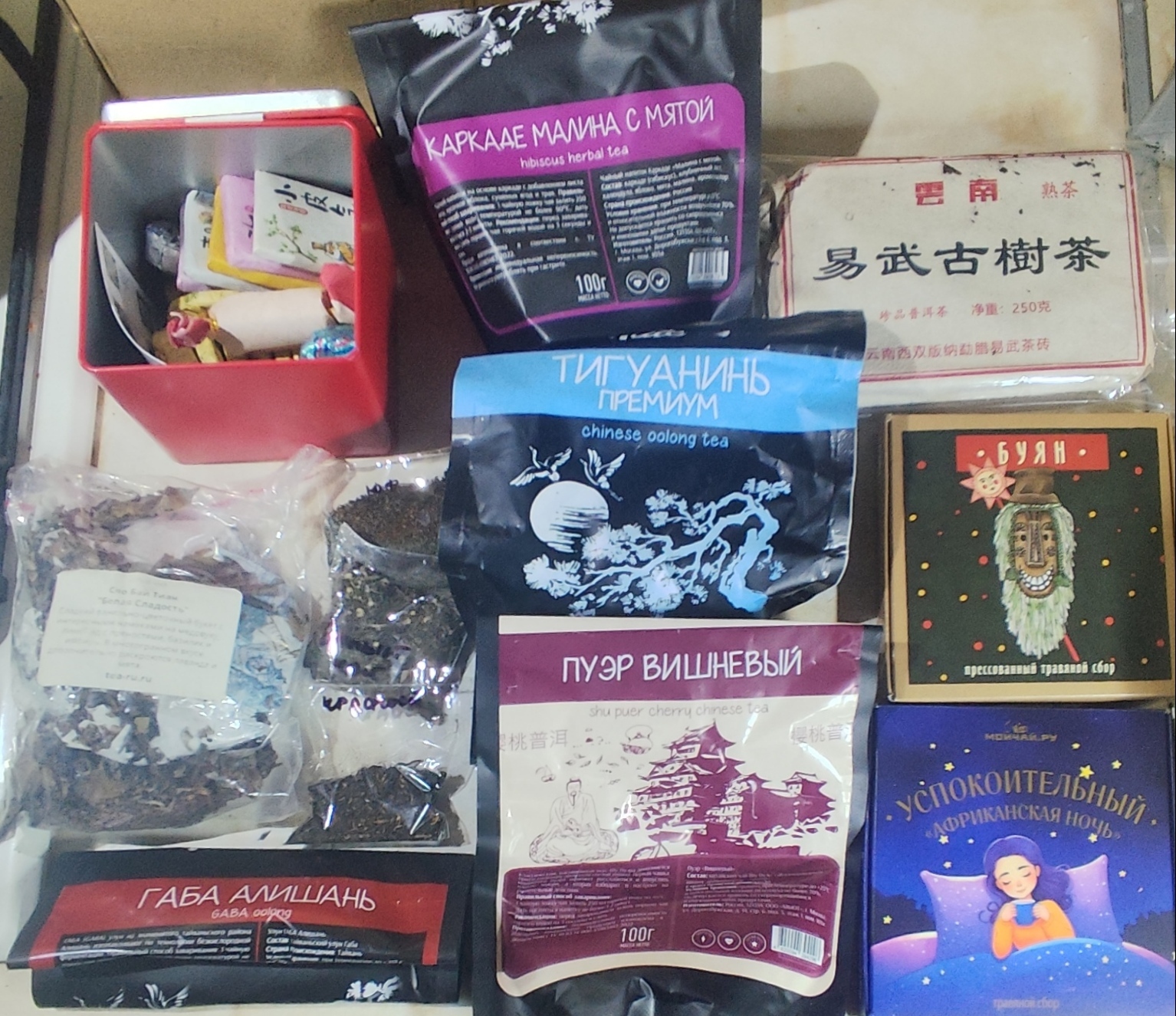 Года полтора назад познакомился с китайскими чаями, было вкусно, а ещё оказалось, что не всё можно шарашить кипятком, и что можно играться с проливами а не заваривать в формате заварки, началось с молочного улуна, сначала было вкусно, потом не интересно, двинулся дальше, понимаю что исследую относительно бюджетный сегмент, попробовал и матчу, которую я больше пить не буду, и мате, и сенчу, и травяные, кстати на фото справа прикольный "Буян" , от этого производителя ещё понравился тот который называется "Дед", хорошо заходят в формате заваривания в термос, а вот "Африканская ночь" не особо зашла...