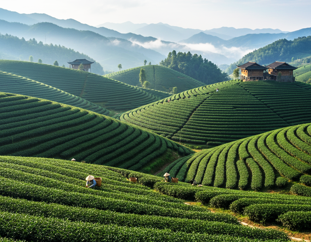 Когда я сошёл с поезда и сел в местное такси, пейзаж начал резко меняться. Городские пейзажи сменились террасированными склонами, покрытыми ровными, изумрудными рядами чайных кустов. Воздух отдавал влажной землёй, навозом и цветами. Это был Китай моего детства, но… облагороженный, поставленный на службу государства.