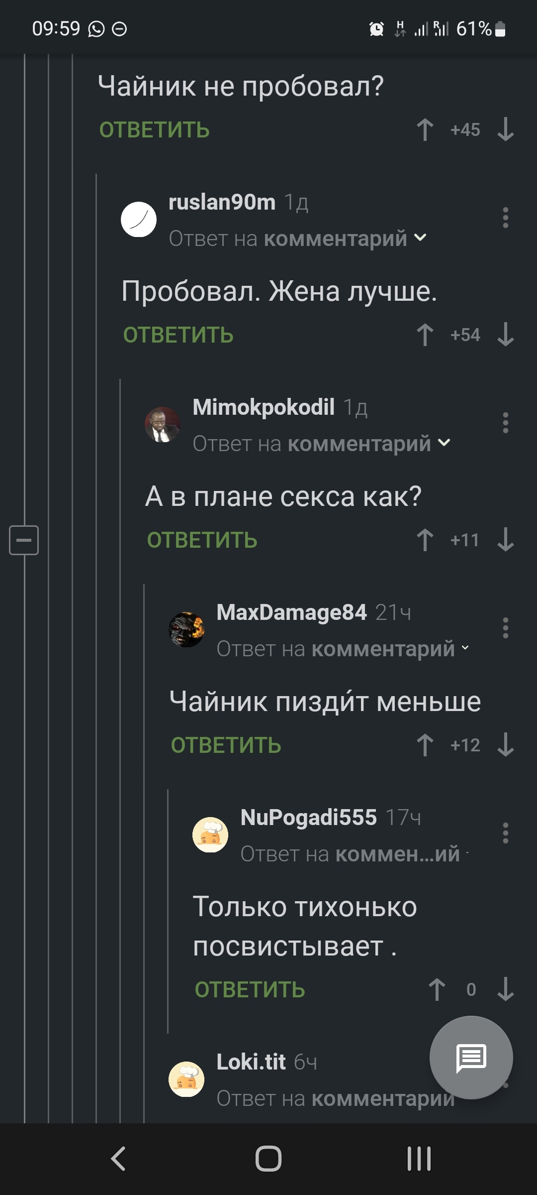 14 AJlbnuHuCT Чайник лучше или жена? 3 года назад Скриншот Комментарии Длиннопост Комментарии на Пикабу Мат 1 1 Ещё 0