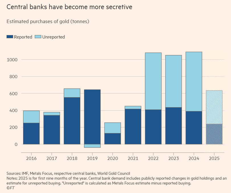 🐌 FT сообщает, что разгон цен на золото последних лет может быть связан с тайными закупками Китая – якобы, они могут превышать официальный объем аж в десять раз (тогда спрос со стороны Китая составил бы более трети всех закупок мировых центробанков).