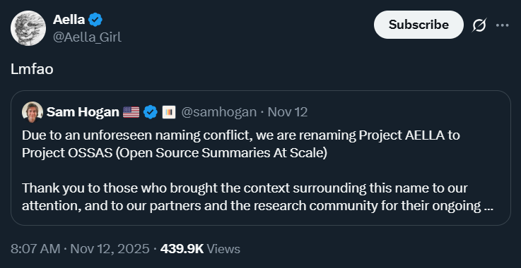 🐌 Но стартапу нужны не только деньги, но и хорошее название. Одни ребята запустили проект, который будет делать структурированные резюме научных исследований с помощью LLM. И назвали его Project AELLA. Правда, им потом насовали в панамку за схожесть имени с нашей любимой вебкам-звездой (и твиттерской умницей) Аэллой – так что, пришлось срочно переименовываться.