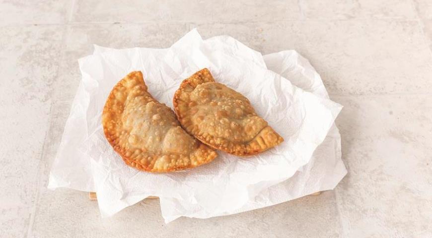 Готовые чебуреки вынимайте при помощи шумовки и перекладывайте на смятые бумажные полотенца. Подавайте чебуреки горячими.