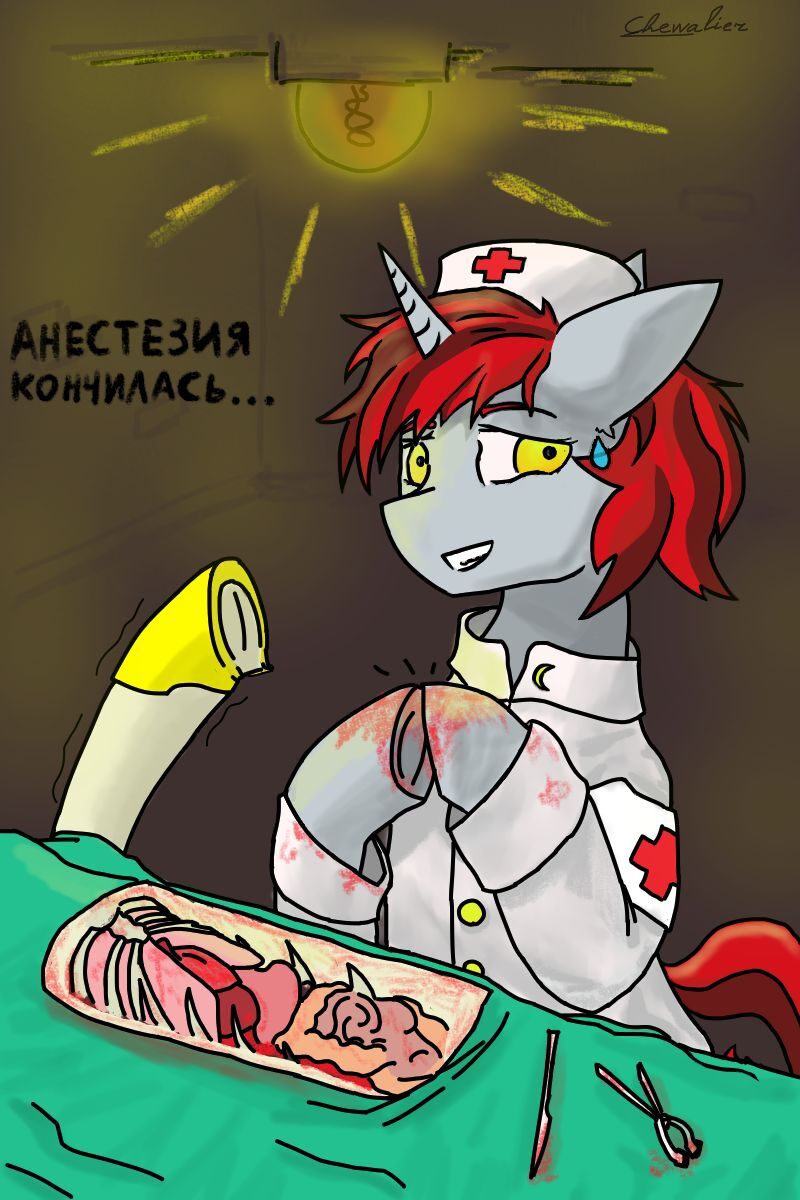 Что касается ОСки - мне показалась забавной идея пони не понявшего суть своей кьютимарки. Красный крест? Значит доктор! Что из этого вышло, мы видим.