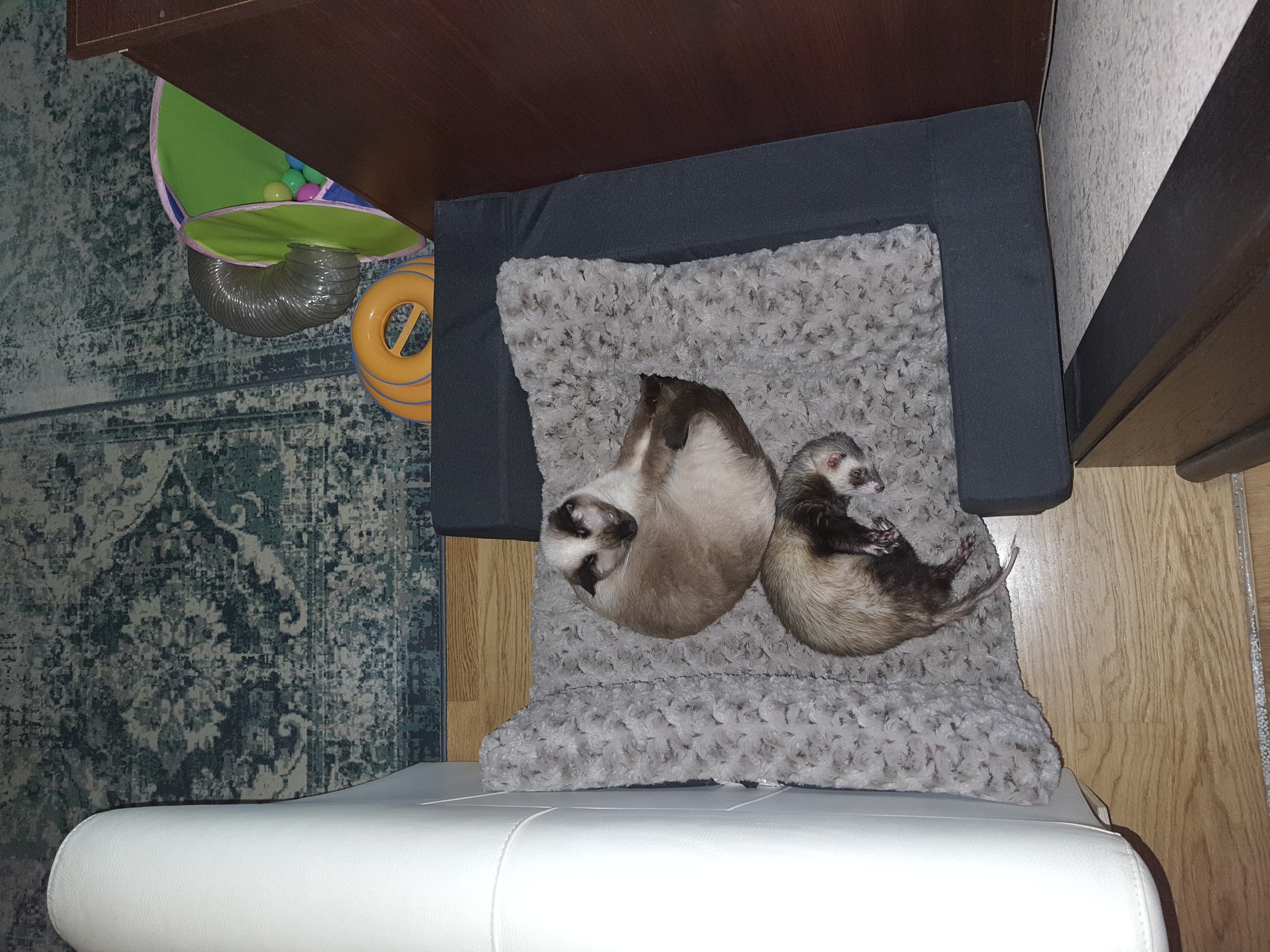 У меня тайская кошка с хорем отлично уживается.