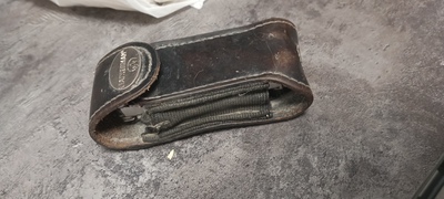 Коллега попросил сделать чехол для подаренного женой мультитула. Поскольку изделие не большое покупать ничего не пришлось. Достаточно было порыться в обрезках от предыдущих экспериментов. В итоге на лицевую сторону нашелся обрезок полы толщины и плотности достаточной для придания необходимой жесткости изделию. Внутреннюю сторону было решено для контраста сделать красной. Перед сшиванием обработал обе стороны финишным кремом для блеска, установил кнопку. Урез обработал краской для уреза. Вот такой чехол получился в итоге. Фото процесса к сожалению не делал.