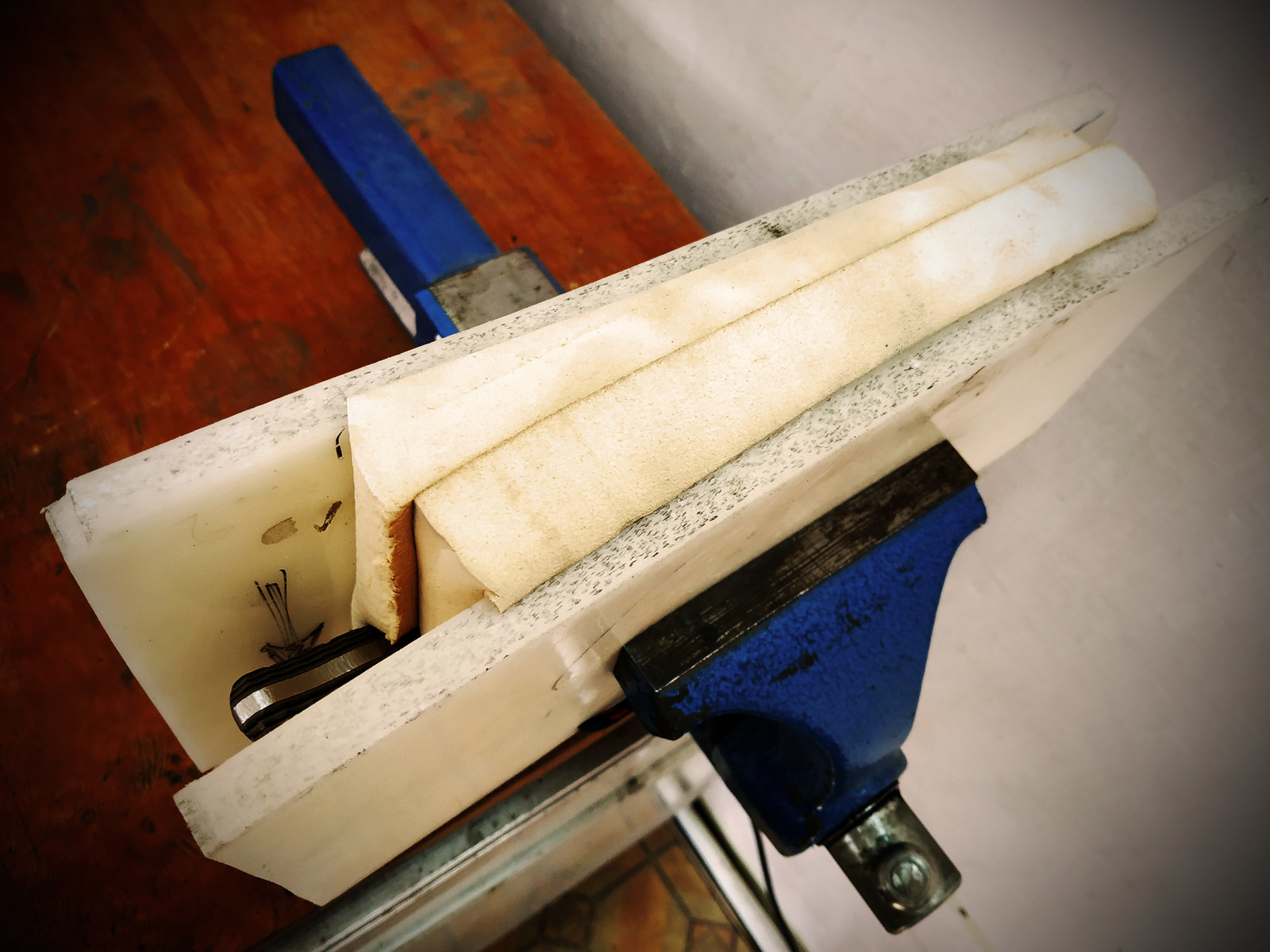 Термостойкий (он оч. плотный) поролон с толстыми обкладками из термопласта и тиски: