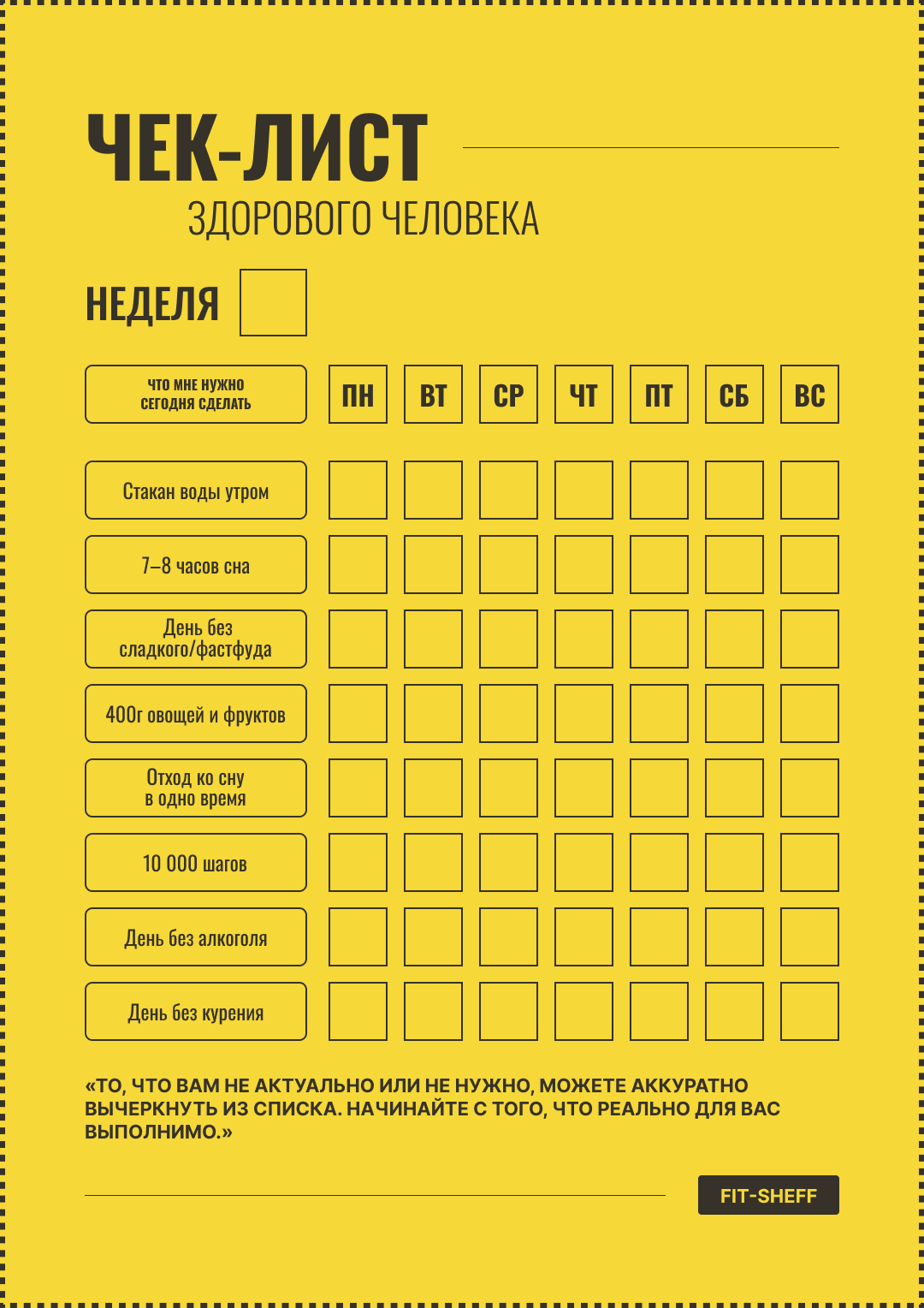 ЧЕК-ЛИСТЫ ПОЛЕЗНЫХ ПРИВЫЧЕК