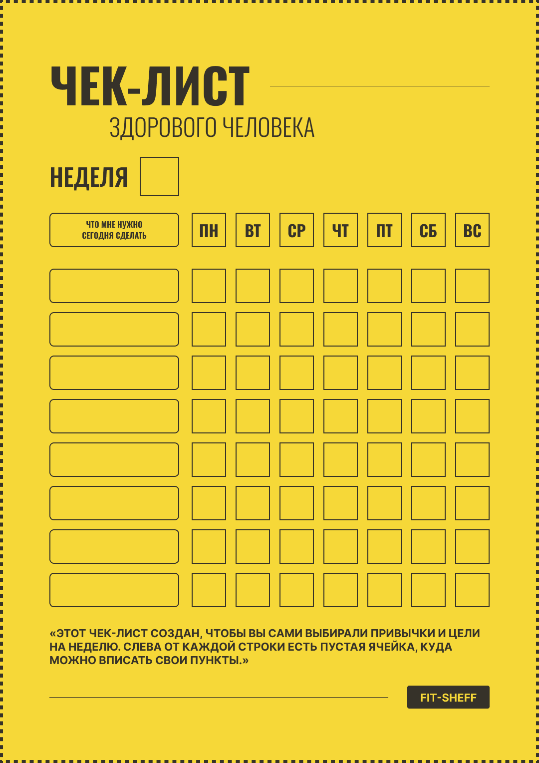 Персональный чек-лист - пустые ячейки, куда можно вписать свои привычки и цели.
