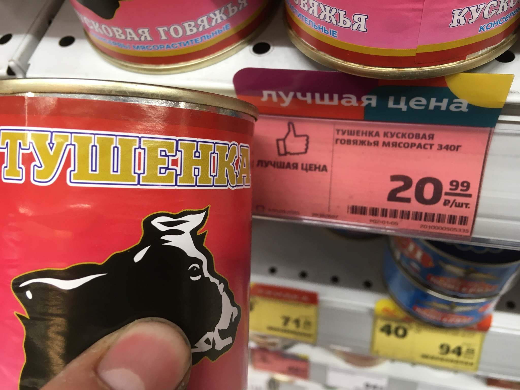 izmail1991 Челендж 5 лет назад Если пост наберёт 500 плюсов, я вскрою ЭТО 340 грамм тушенки, за 21 рубль. Сколько грамм там мяса, делаем ставки))Собачьи консервы дороже стоят [моё] Денег нет но вы держитесь Еда Ещё 0