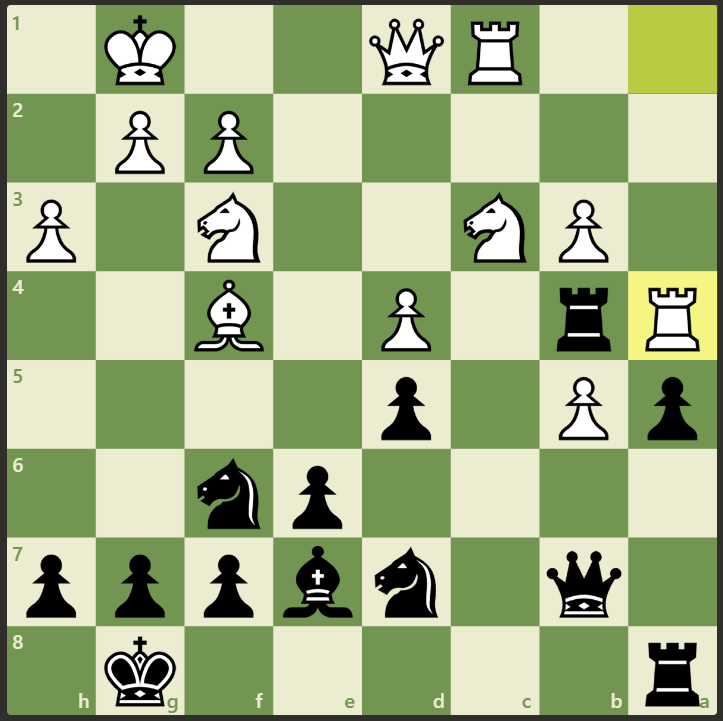 Играем дальше: 1. e4 с6 2. d4 d5 3. ed cd 4. c4 Кf6 5. Kc3 e6 6. c5 Сe7 7. Cb5 Сd7 8. a4 0-0 9. Kf3 b6 10. cb Фb6 11. 0-0 Сb5 12. ab a6 13. Cf4 Кbd7 14. Фa4 a5 15. Лfc1 Лfc8 16. h3 Лс4 17. Фd1 Фb7 18. b3 Лb4 19. Лa4 🤜🤛
