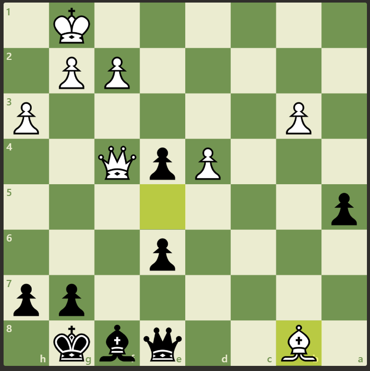 Играем дальше: 1. e4 с6 2. d4 d5 3. ed cd 4. c4 Кf6 5. Kc3 e6 6. c5 Сe7 7. Cb5 Сd7 8. a4 0-0 9. Kf3 b6 10. cb Фb6 11. 0-0 Сb5 12. ab a6 13. Cf4 Кbd7 14. Фa4 a5 15. Лfc1 Лfc8 16. h3 Лс4 17. Фd1 Фb7 18. b3 Лb4 19. Лa4 Ke4 20. Ke4 de 21. Лс7 Фb5 22. Лb4 Сb4 23. Ke5 Ke5 24. Ce5 Се8 25. Фh5 Фе8 26. Фg4 Лb8 27. Лf7 Крf7 28. Фf4 Крg8 29. Cb8 🤜🤛