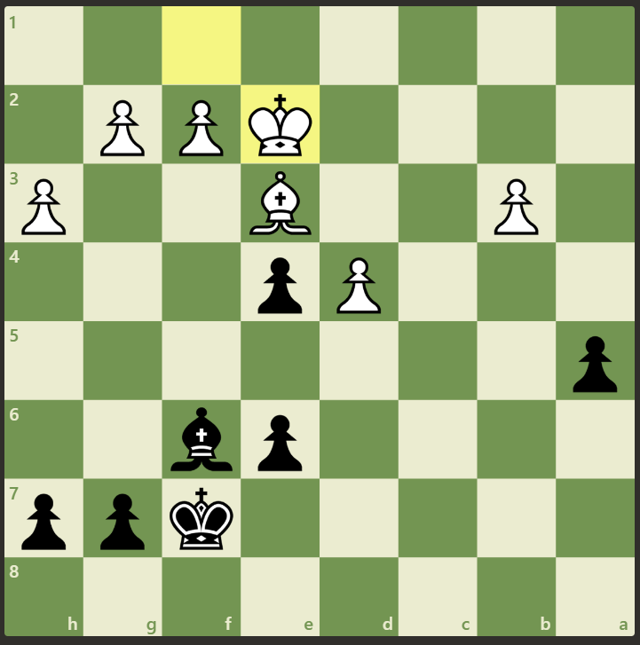 Играем дальше: 1. e4 с6 2. d4 d5 3. ed cd 4. c4 Кf6 5. Kc3 e6 6. c5 Сe7 7. Cb5 Сd7 8. a4 0-0 9. Kf3 b6 10. cb Фb6 11. 0-0 Сb5 12. ab a6 13. Cf4 Кbd7 14. Фa4 a5 15. Лfc1 Лfc8 16. h3 Лс4 17. Фd1 Фb7 18. b3 Лb4 19. Лa4 Ke4 20. Ke4 de 21. Лс7 Фb5 22. Лb4 Сb4 23. Ke5 Ke5 24. Ce5 Се8 25. Фh5 Фе8 26. Фg4 Лb8 27. Лf7 Крf7 28. Фf4 Крg8 29. Cb8 Фb5 30. Cd6 Фf5 31. Ce5 Фf4 32. Cf4 Се7 33. Крf1 Сf6 34. Ce3 Крf7 35. Крe2 🤜🤛
