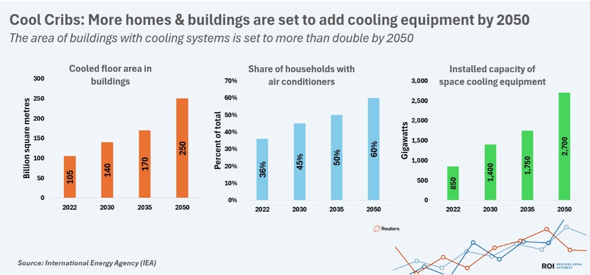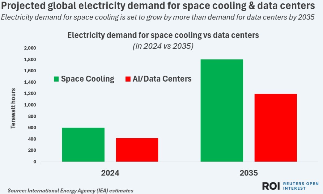 Однако, по данным Think Thank Ember, к 2035 году мировой спрос на системы охлаждения вырастет примерно на 1200 ТВт-ч, что почти равно объему электроэнергии, например, потребляемой всем Ближним Востоком в год.