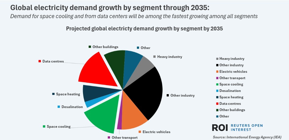 По прогнозам Международного энергетического агентства (МЭА), спрос на электроэнергию со стороны центров обработки данных к 2035 году вырастет примерно на 800 тераватт-часов (ТВт·ч) по сравнению с примерно 416 ТВт·ч в 2024 году.