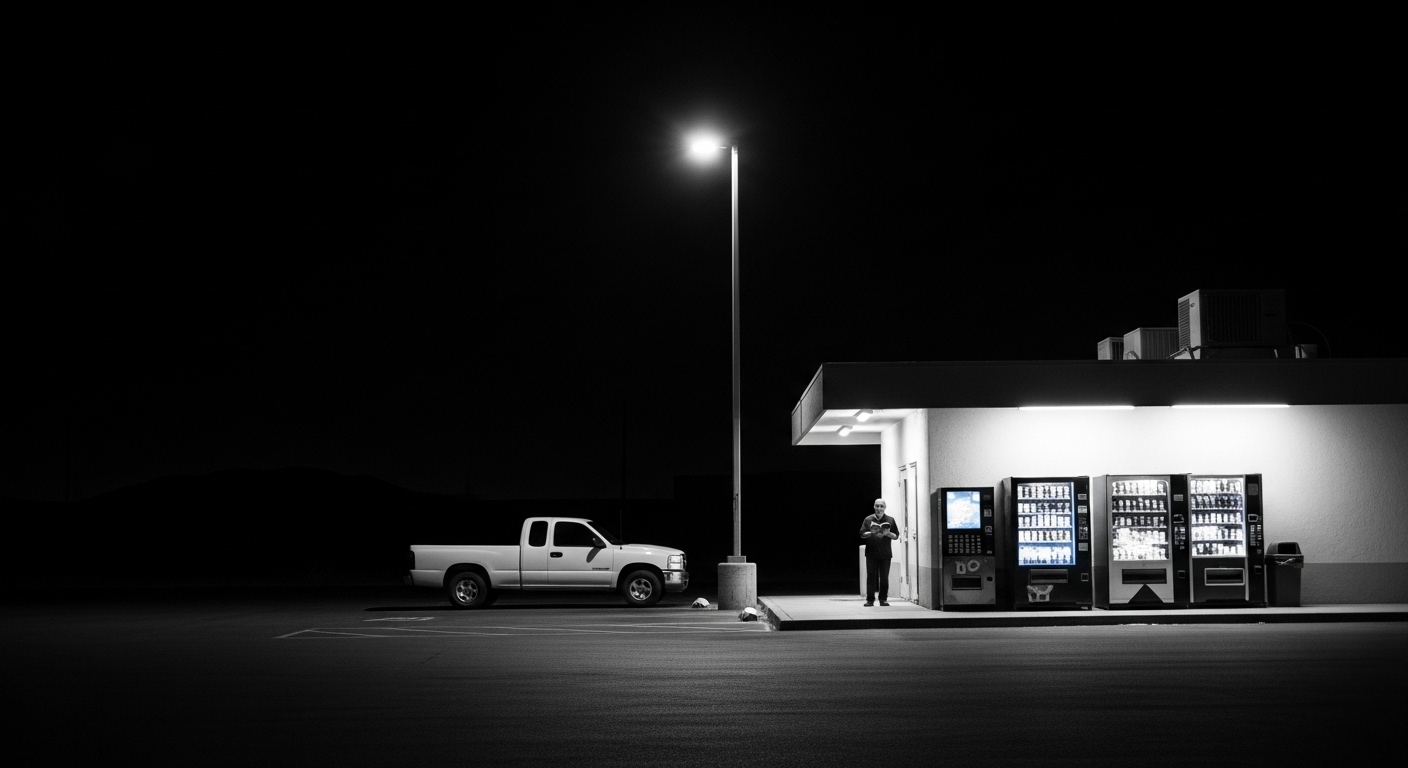 Он забросил четвертаки в автомат, достал бутылку и протянул мне обеими руками, словно дар. Когда я взяла её, его пальцы не задержались. Он тут же отступил, держа дистанцию, которая казалась тщательно выверенной, чтобы я не пугалась.