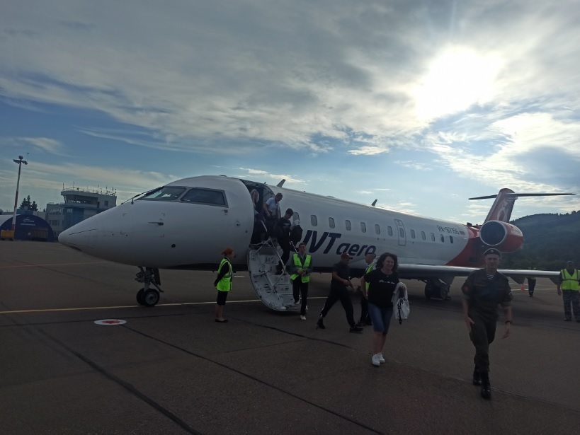 Самолет CRJ-200 татарской авиакомпании UVT aero по прилету рейсом Казань-Горно Алтайск. Рейс прямой, но ценник конский - 13 000. Если бы не компенсация за билет от работодателя, такой перелет бы я не потянул.