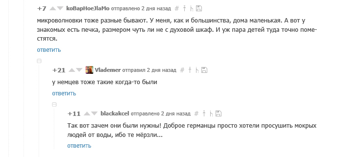 2 kozirewdima12 Чем дольше я сижу на PIkabu.... 9 лет назад Тем больше я узнаю историю http://pikabu.ru/story/innovatsiya_v_stirke_noskov_3951759 Немцы Микроволновка Печь История Комментарии
