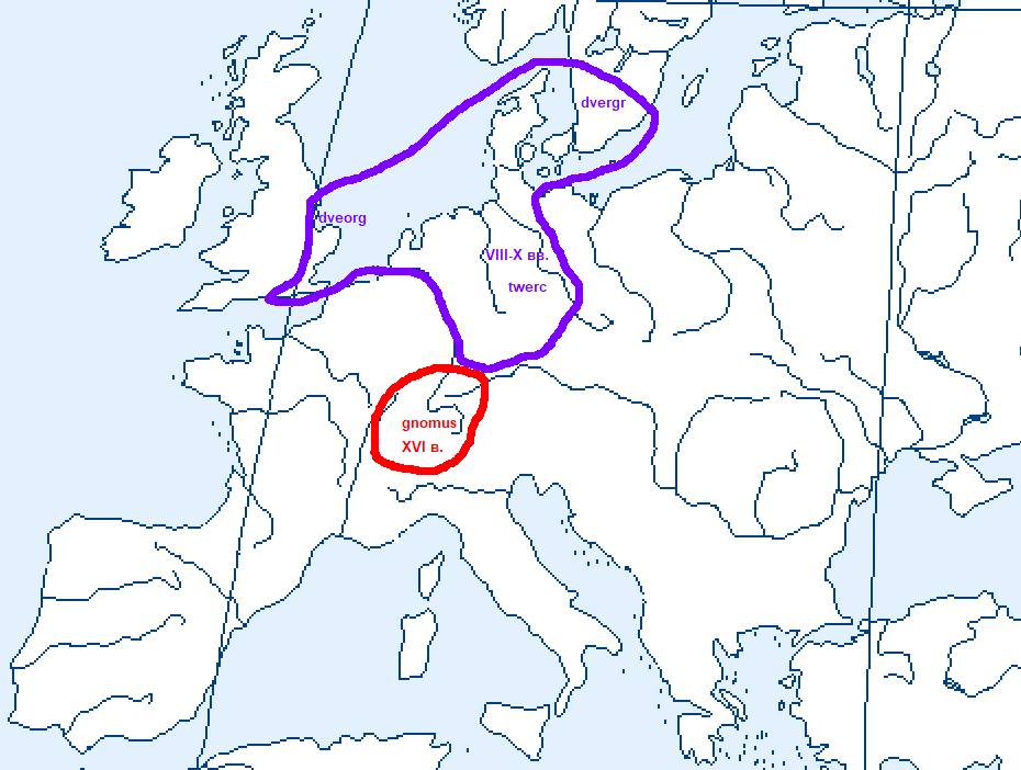 В Германии их называли словом "twerc" (нет, не тот тверк, когда девки задницей трясут!), позже это превратилось в "Zwerg". В Скандинавии "dvergr". В Англии "dweorg" ("dweorh", "dwerg"), затем "dwergh"/"dwerw"/"dwerf", и наконец - с XVI в. -  "dwarf" ("карлик").