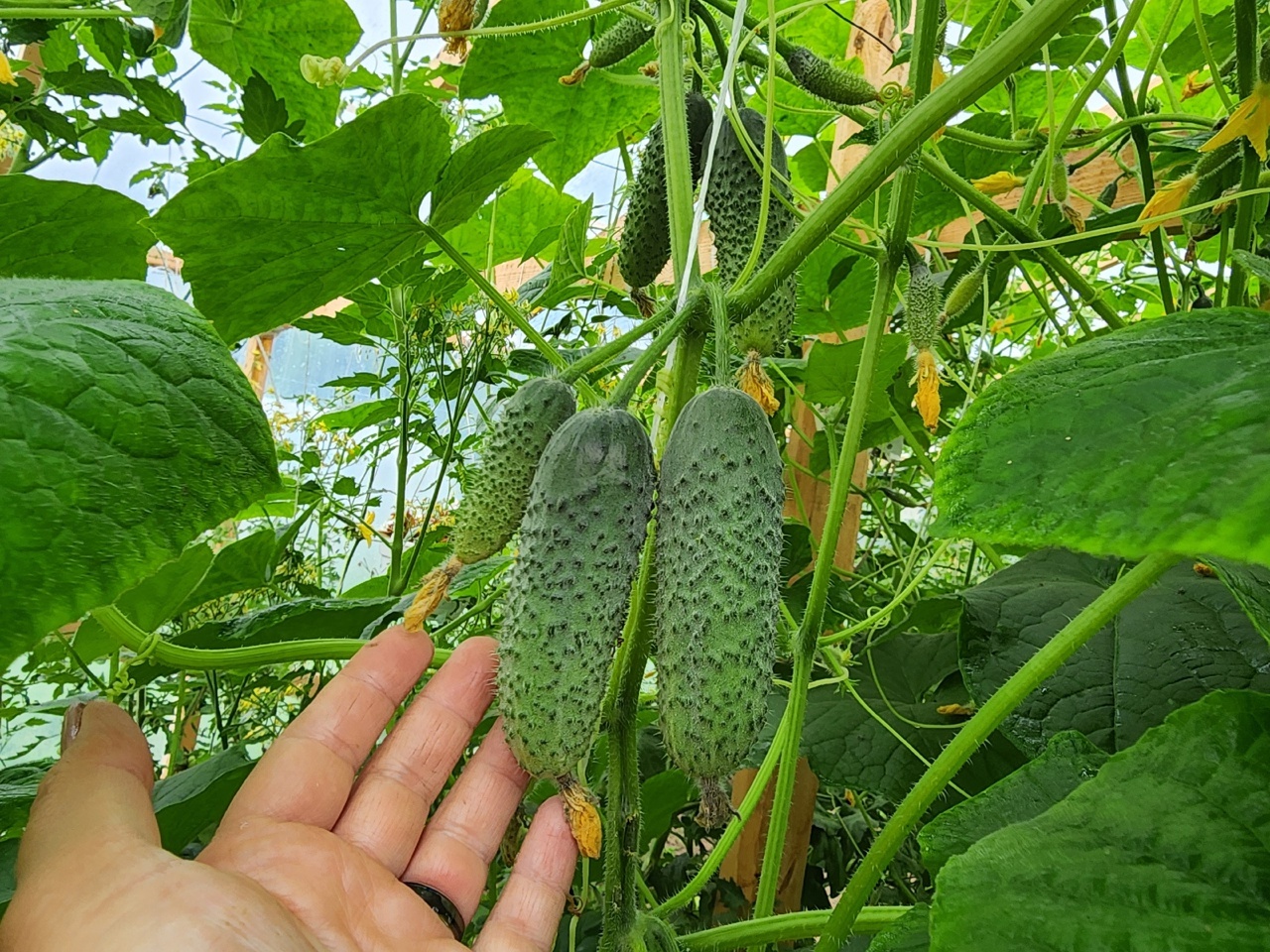 Сейчас я вношу настой коровяка под огурцы, чтобы напитать их органикой. В настой коровяка вношу 1 ст. л. МагБора, чтобы стимулировать образование завязей.