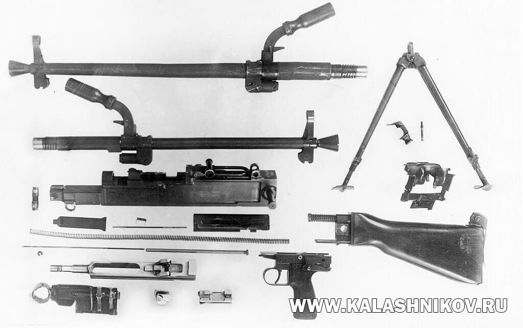Неполная разборка опытного пулемёта ЕПК/Е-2, в дальнейшем превратившегося в ПК. На мой взгляд, если бы, работая над ПК, Калашников и вдохновлялся «чехом», то исключительно для того, чтобы сделать свою конструкцию принципиально проще, легче и технологичнее