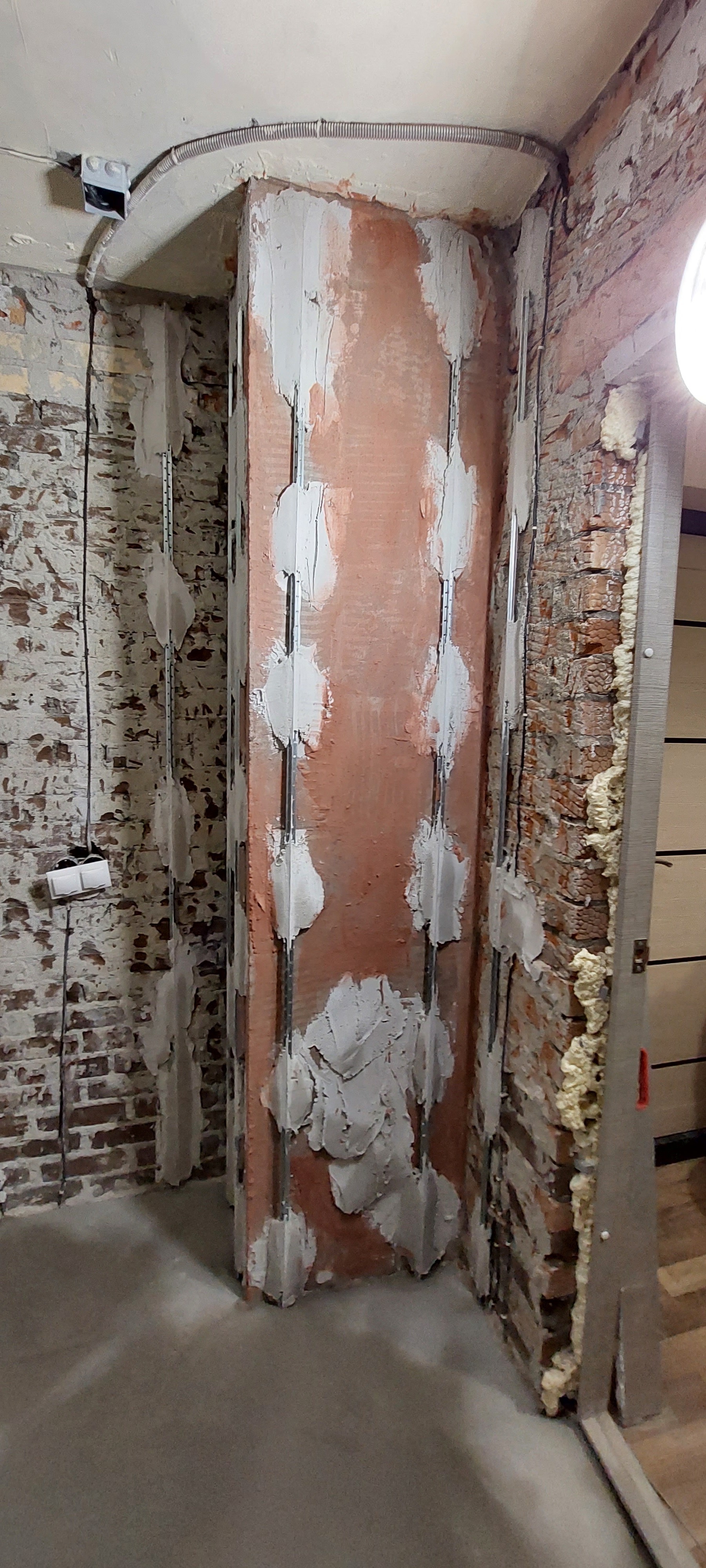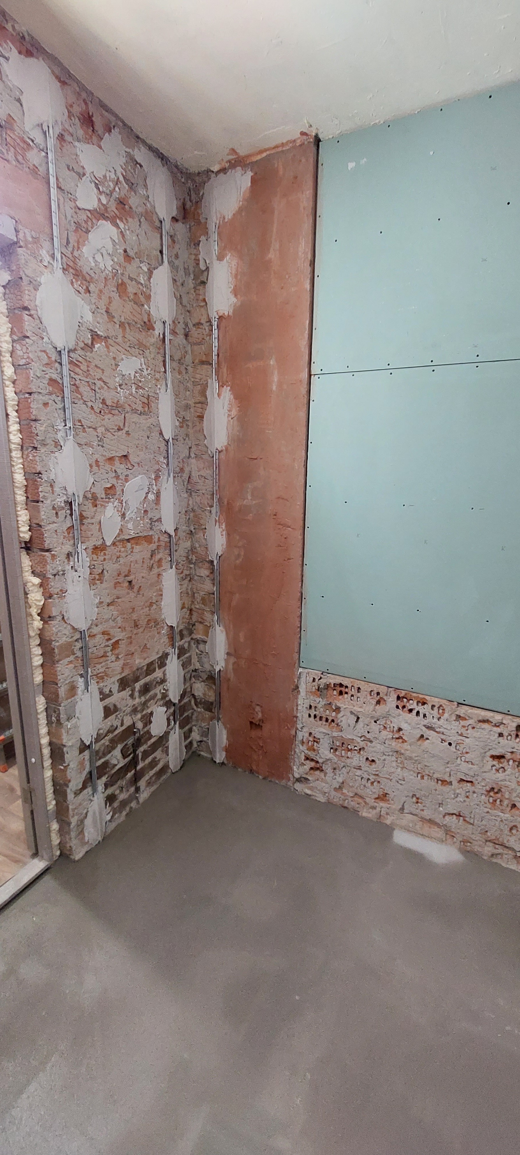 Застройщик же, требовал качества. Ну и что делать плиточникам? Штукатурка долго, толстым слоем клея для плитки не получится, вот и нашли выход.