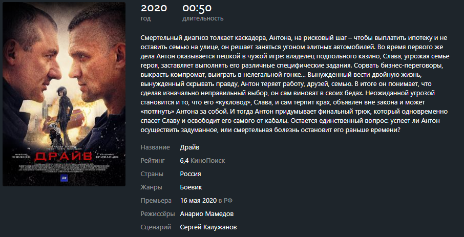 Многосерийный фильм Драйв, 2020 год.