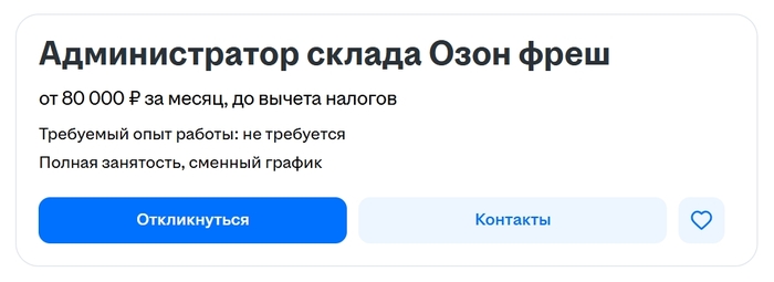 Это ответственные должности — но именно они помогают поддерживать высокий уровень сервиса для наших клиентов. При этом администратором склада в Ozon fresh можно устроиться без опыта, а зарплата на старте более чем достойная.
