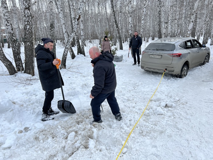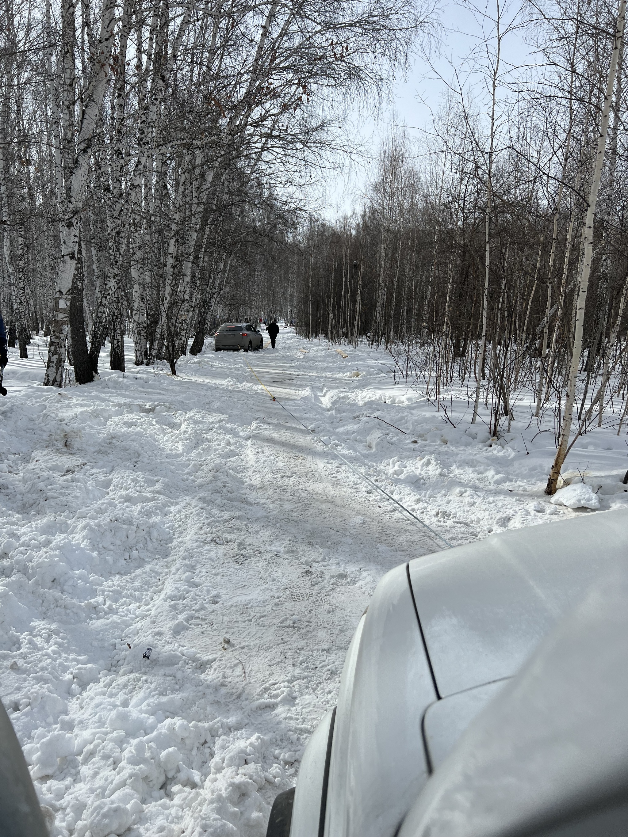 После тщетных попыток выбраться самостоятельно он обратился за помощью к знакомому водителю Нивы, чтобы тот помог в эвакуации. Они съездили купили доски, лопату и попытались эвакуировать Haval. Ниве удалось протащить Haval какое-от расстояние, после чего он соскочил с твердого наста и окончательно уселся левой стороной в снег.
