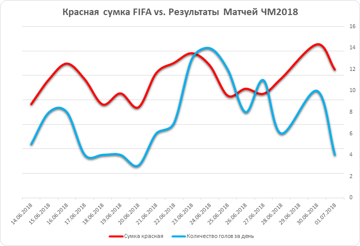 Чемпионат мира по футболу в России – время, когда все готовят прогнозы, выявляют закономерности, собирают статистику и ищут связь с футболом. Сейчас эпоха Big Data, мы решили не отставать от коллег и на основании «больших данных» выявили интересную взаимосвязь – количество приобретенных сувенирных красных сумок Fifa коррелирует с забитыми мячами.