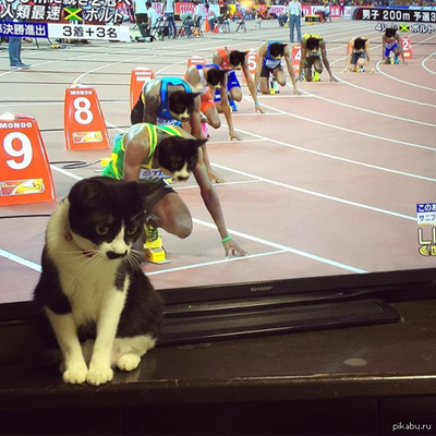 Итак, среднестатистическая кошка способна бегать со скоростью 13.86 м/с, а самые лучшие во всем мире чемпионы-спринтеры бегают не быстрее чем 10.5-12.5 м/с…. Так что то милое сонное существо, так сладко потягивающееся сейчас в своей собственной уютной корзиночке — настоящий чемпион. (с)
