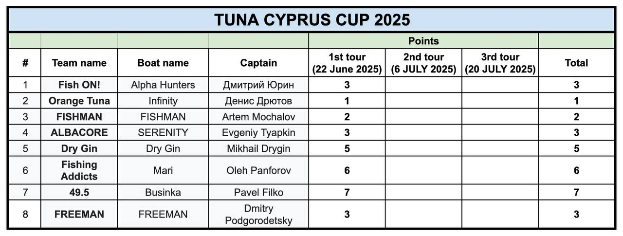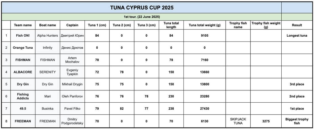 В минувшее воскресенье прошёл первый раунд первого чемпионата Кипра по ловле тунца.