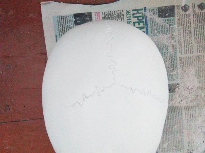 Покрыл воздушный шар нужного размера слоями папье-маше. Слоев под 8 было. Пока не получится достаточно крепка основа. Сначала туалетной бумагой, затем газетками. Клей ПВА.