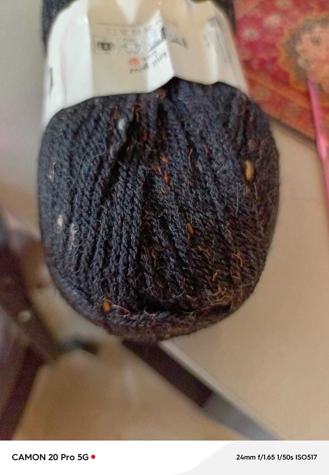 Мною были добыты 2 мотка пряжи, показавшейся мне идеальной для такого дела (спойлер - нифига) - Ярнарт Твид, черная с мохрушками и мастер-класс для чайников на заблокированном Youtube (канал называется Creative Life).