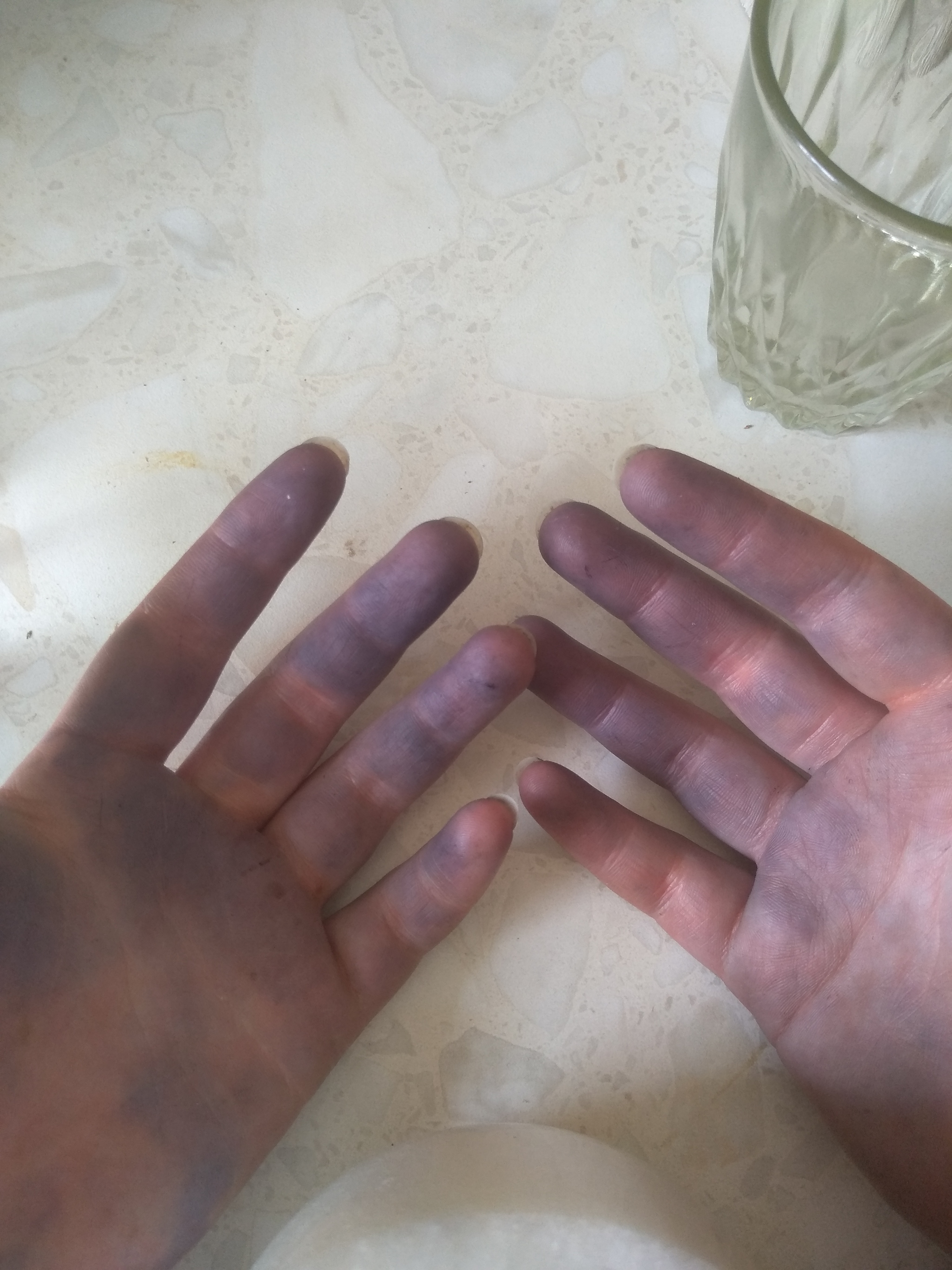 Первый день собирала только в перчатках, но на второй день, когда в течении часа порвались три пары (из-за того что залезла на дерево), я забила на руки и вот результат)) вживую они чуть темнее были
