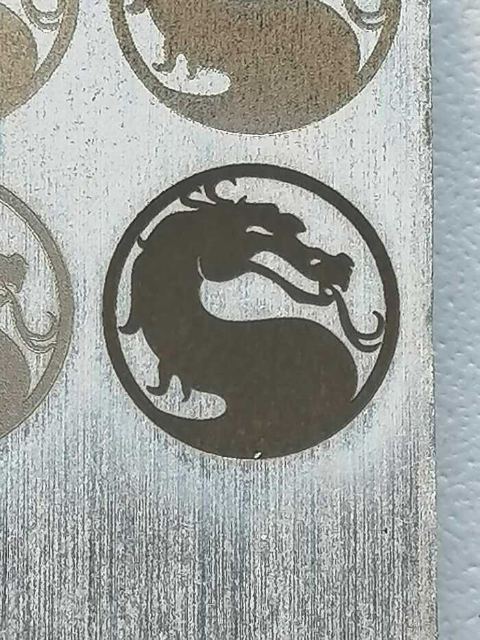 Пятая эмблема - частота 1000 кГц, ширина импульса 2 нс, мощность 95% от номинальной и те же 10 мм/с. Явно мощности лазера при таком фокусе недостаточно.