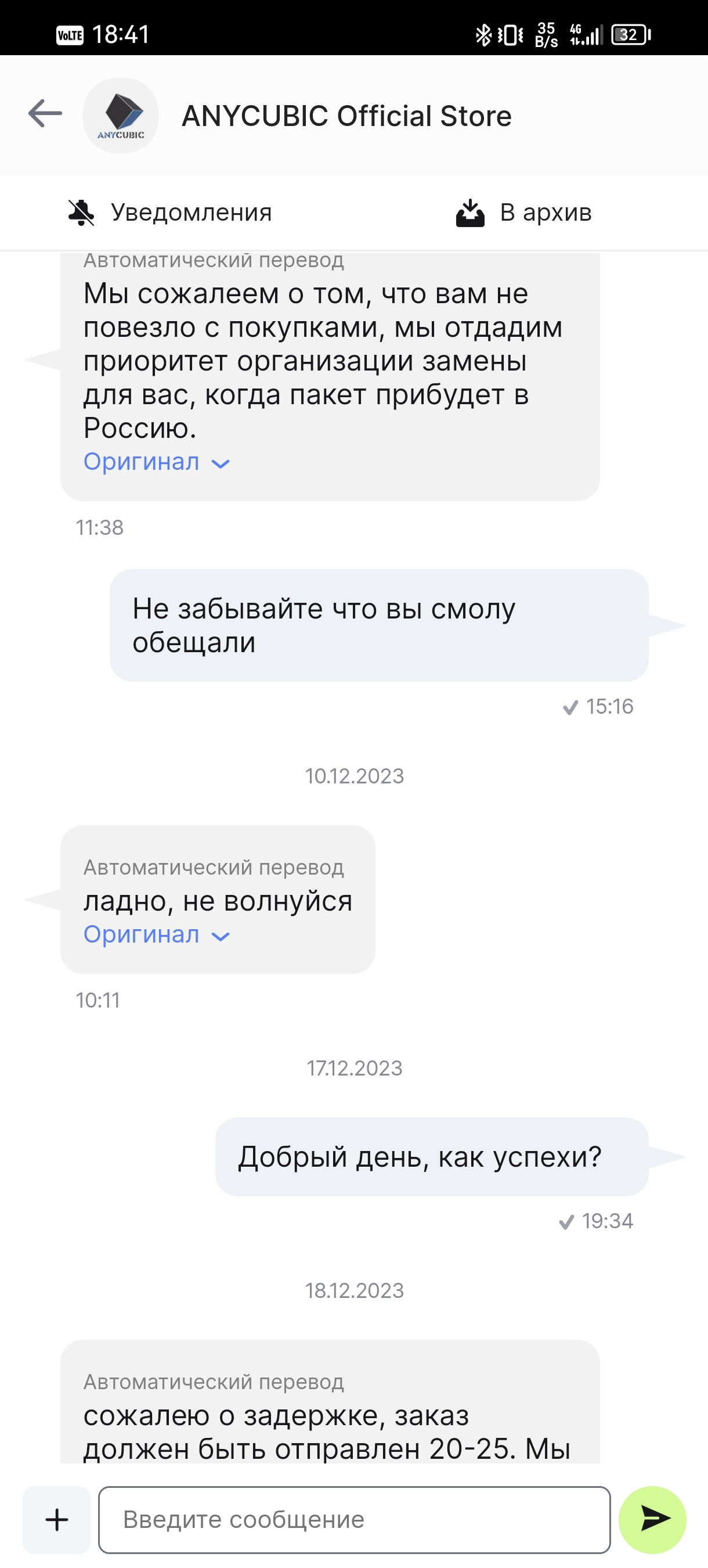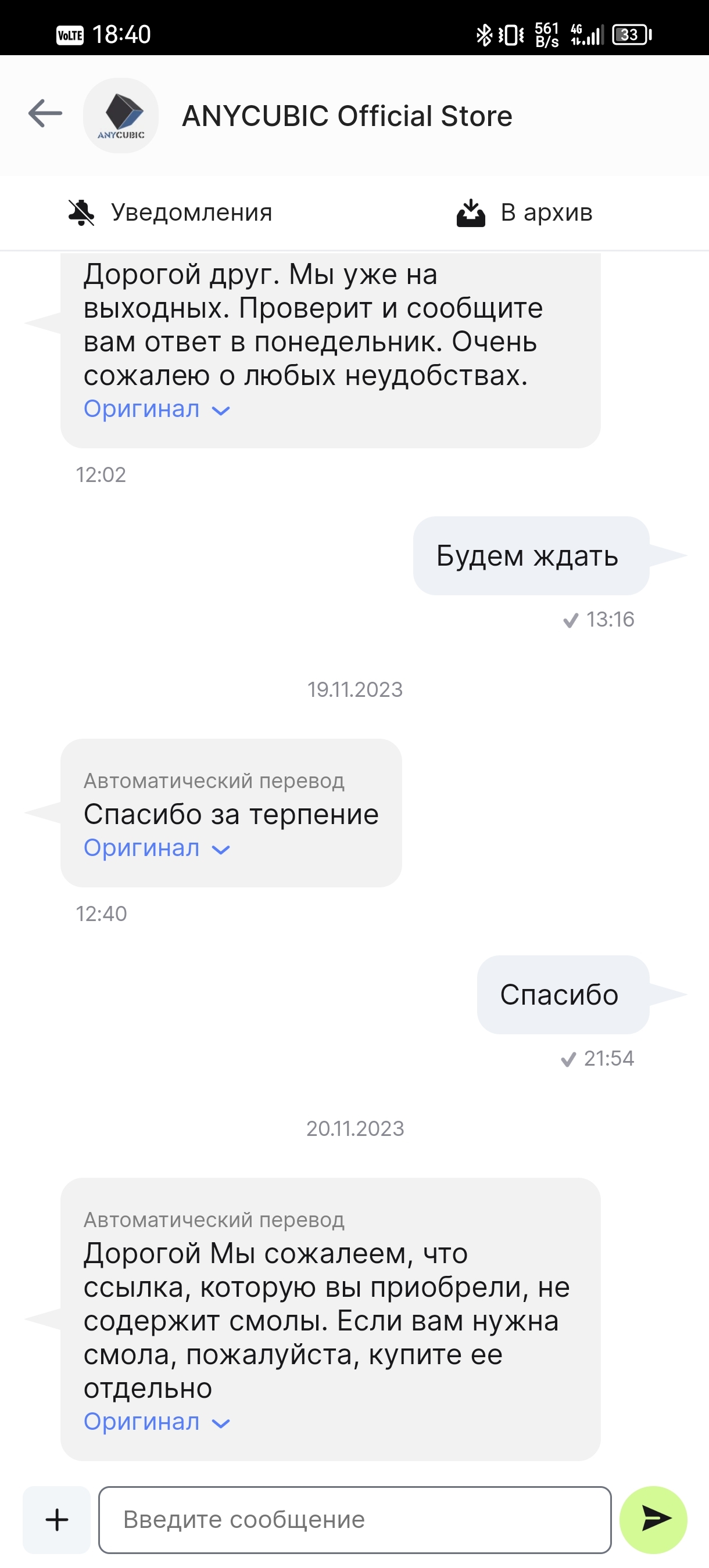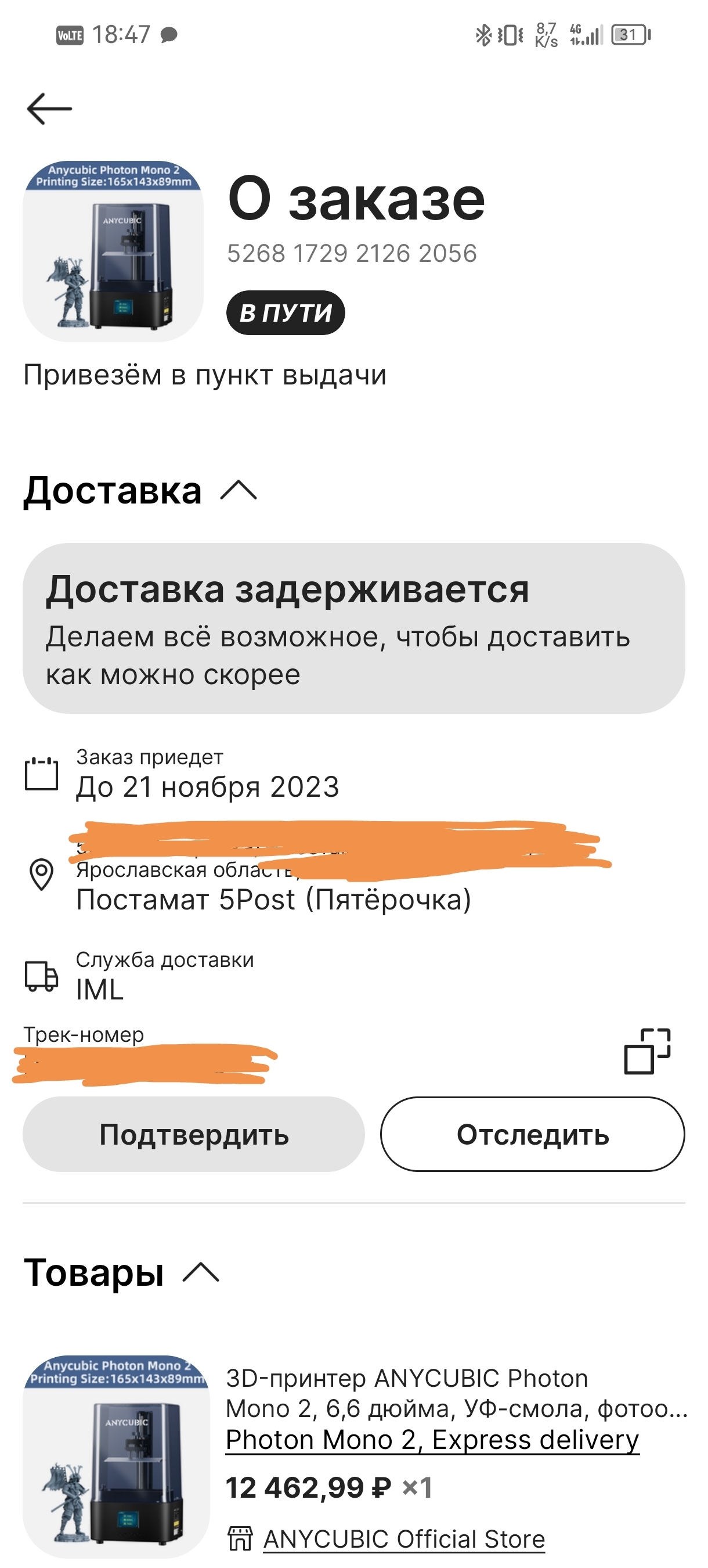 Но быстро я только оплатил, все остальное как то долго тянется, мне уже обещали даже банку смолы, но увы пока что ни принтера ни смолы, ни денег(возврат не хочу тк принтер стоит 15к теперь да и это подарок себе на новый год, плюс смолу отдельно купил уже).