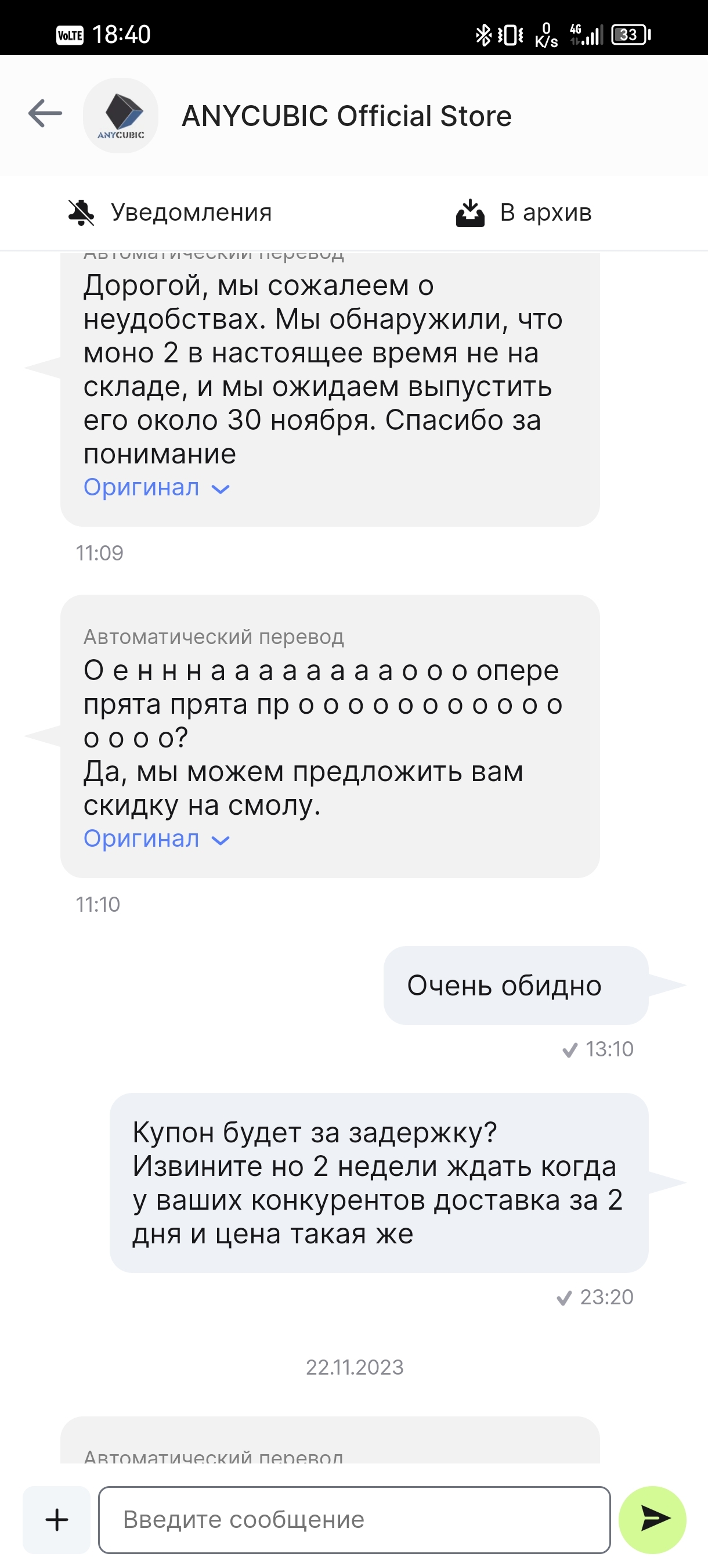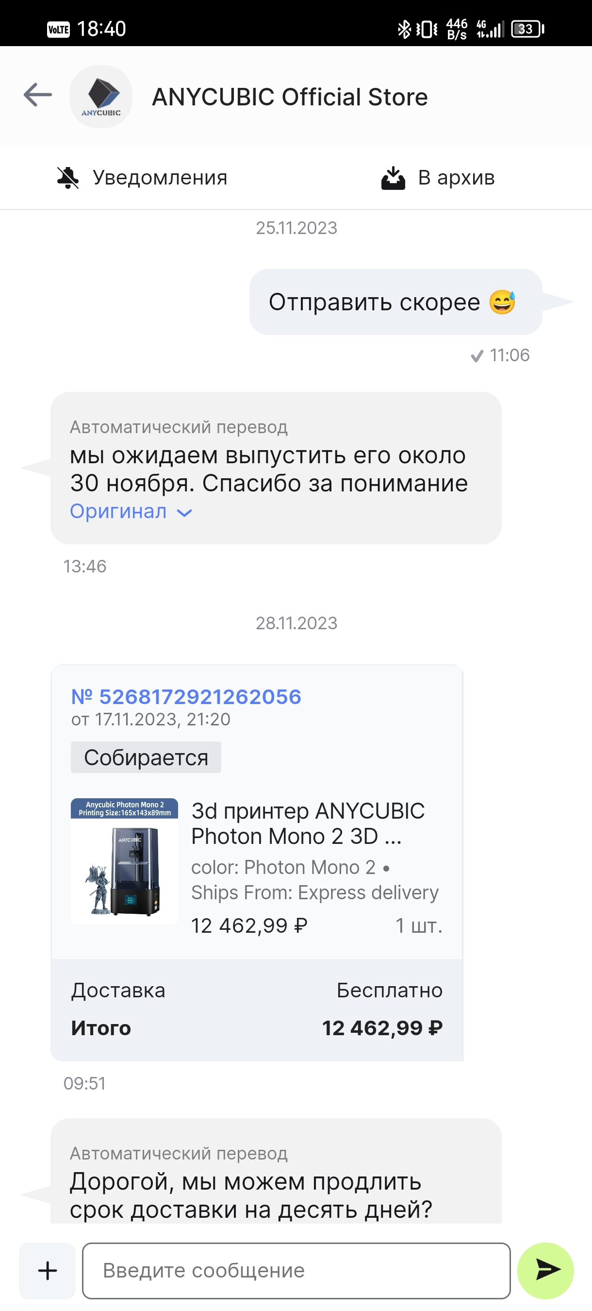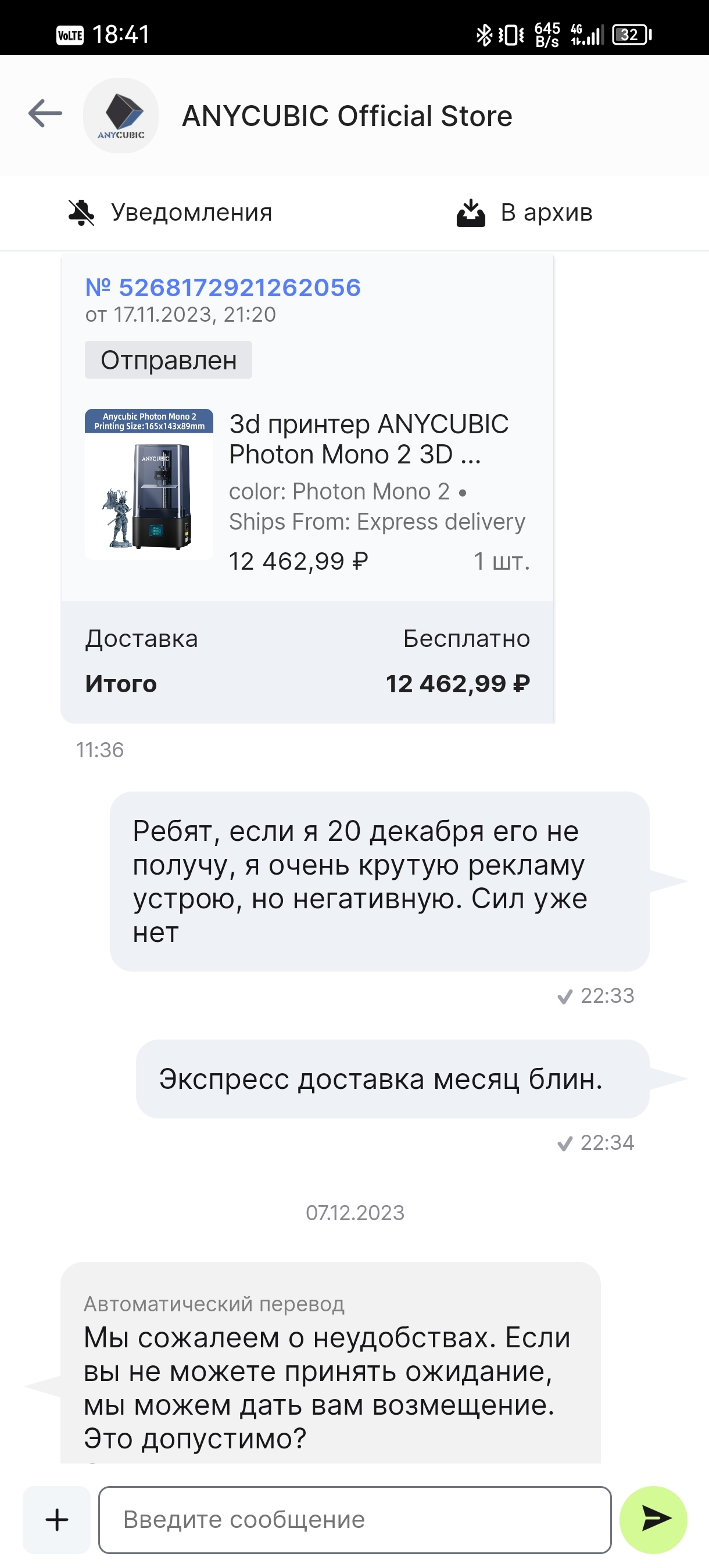 Но быстро я только оплатил, все остальное как то долго тянется, мне уже обещали даже банку смолы, но увы пока что ни принтера ни смолы, ни денег(возврат не хочу тк принтер стоит 15к теперь да и это подарок себе на новый год, плюс смолу отдельно купил уже).