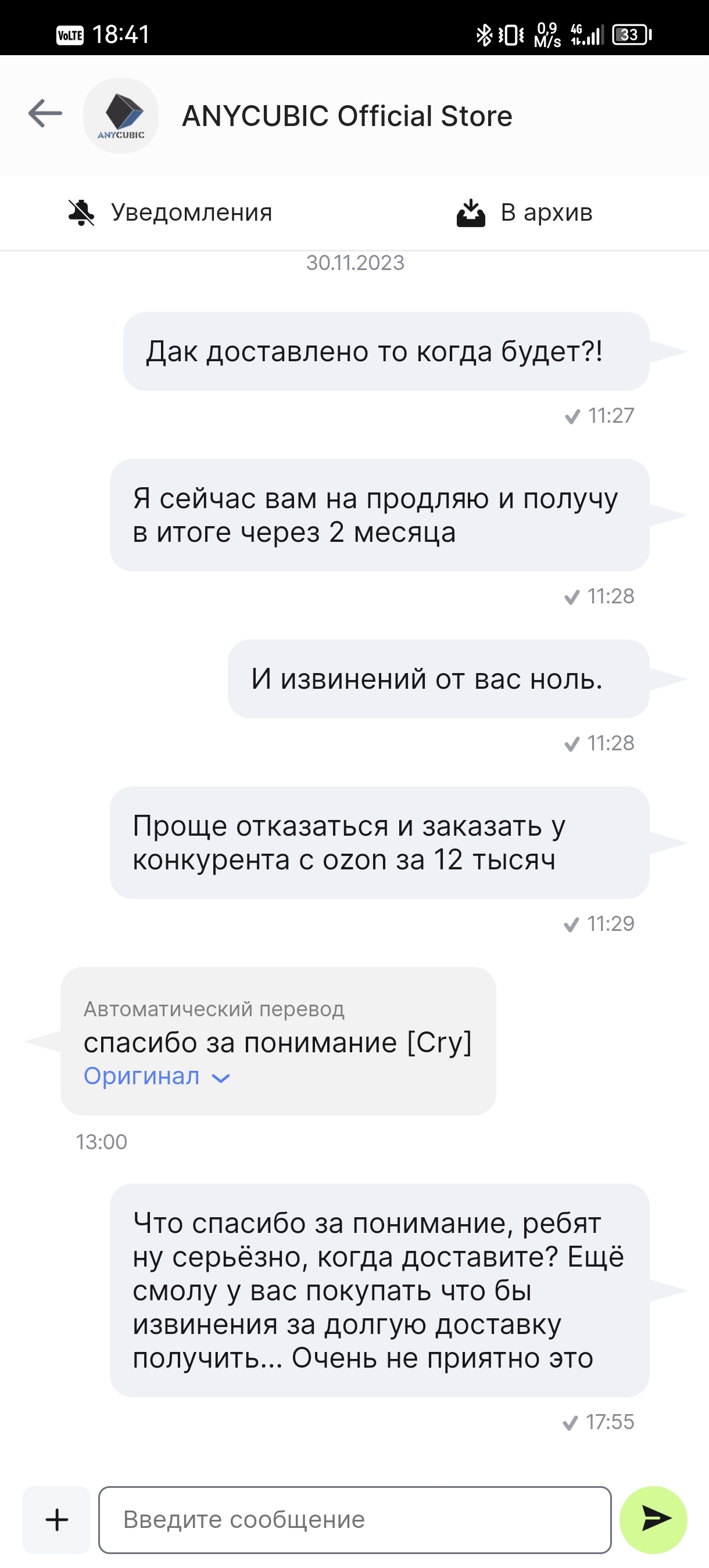 Всё это написано ради антирекламы магазина этих принтеров, да и просто поделиться с кем нибудь что бы кто то так же не потратил кучу времени. В итоге я заказал у других такой же принтер через 4 дня обещали(🤣) доставить, ну поживём увидим 😅