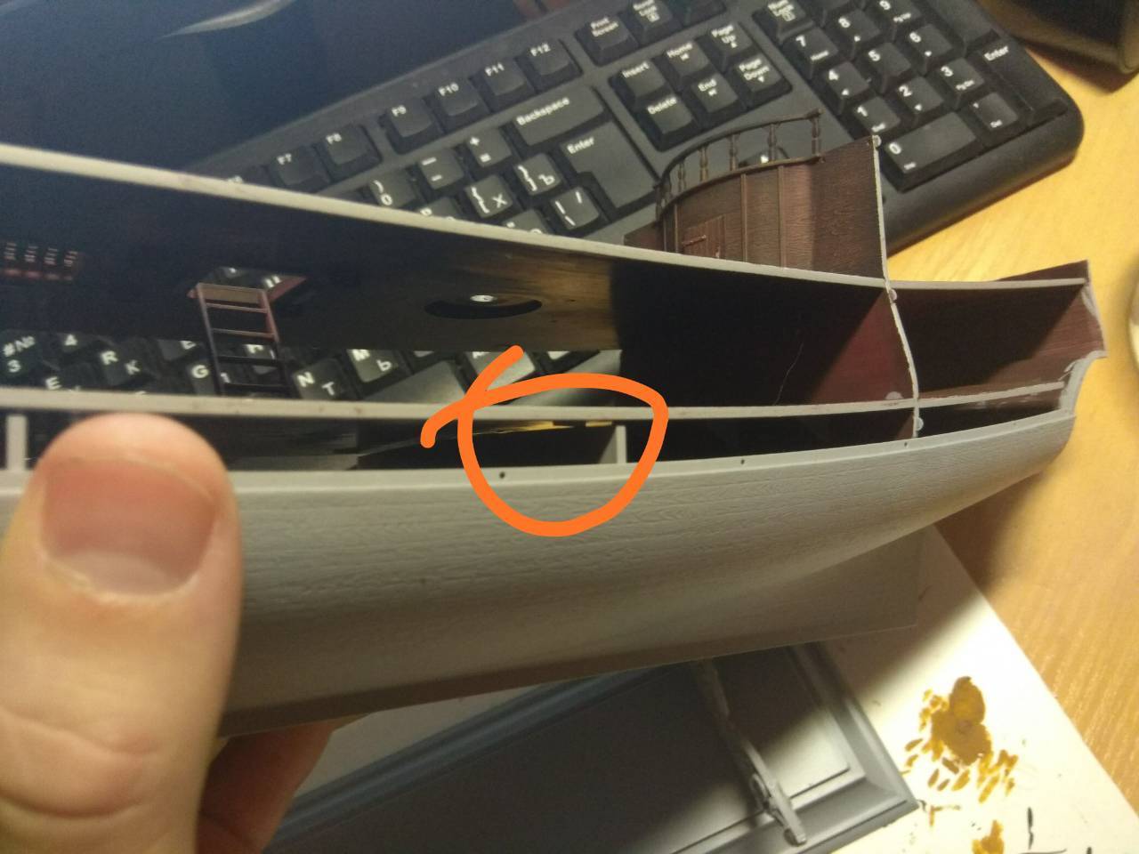 После чего установила остальные части корпуса, а так же верхнюю палубу и заднюю часть корпуса. Разумеется, без щелей не обошлось, но тут конечно очень выручила шпатлевка